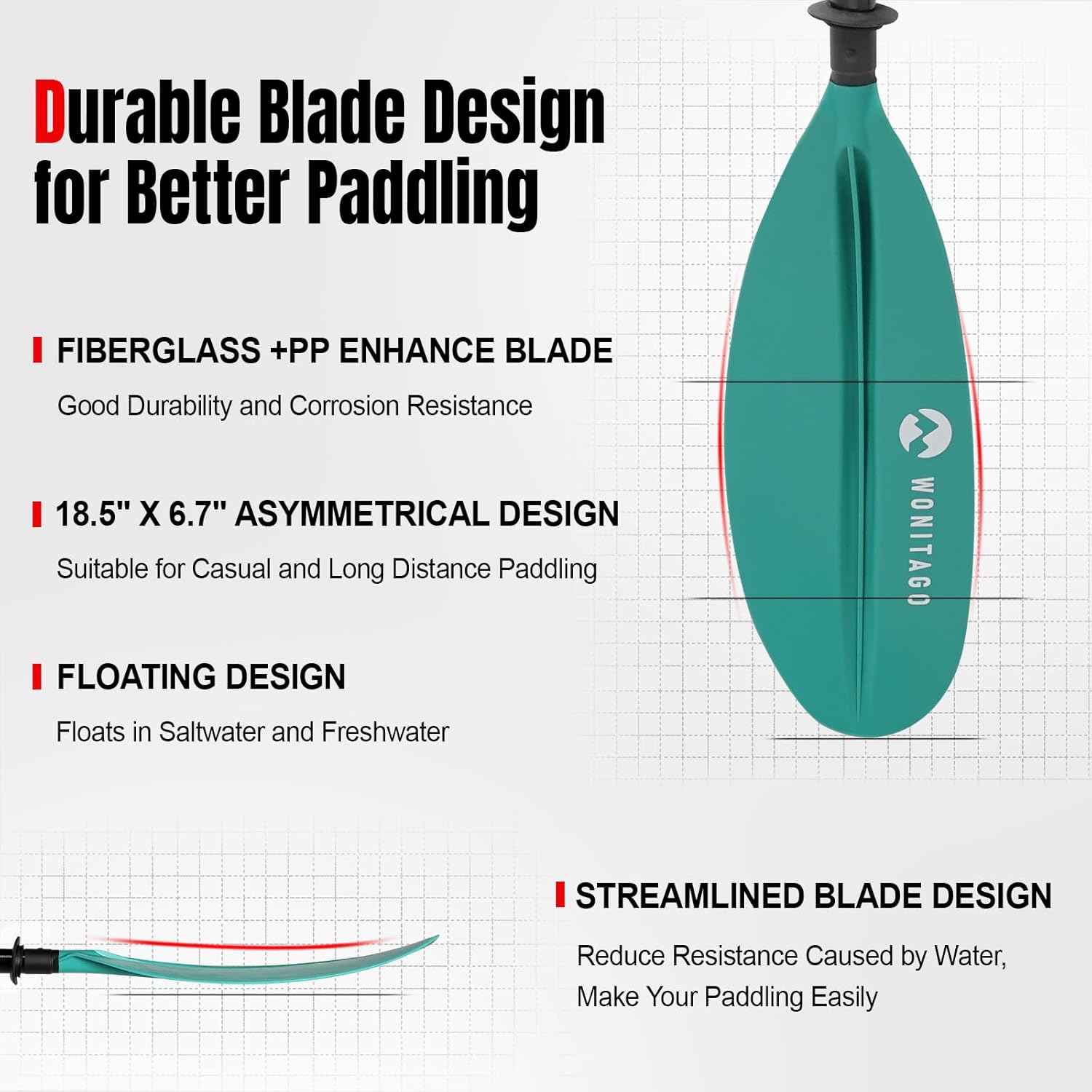 WHY CHOOSE WONITAGO — Our kayak oars reduce fatigue and maximize performance, allowing you to paddle for longer without discomfort. So, whether you’re exploring the coast, racing down a river, or enjoying a peaceful lake, our kayak paddles are the perfect choice for your next adventure