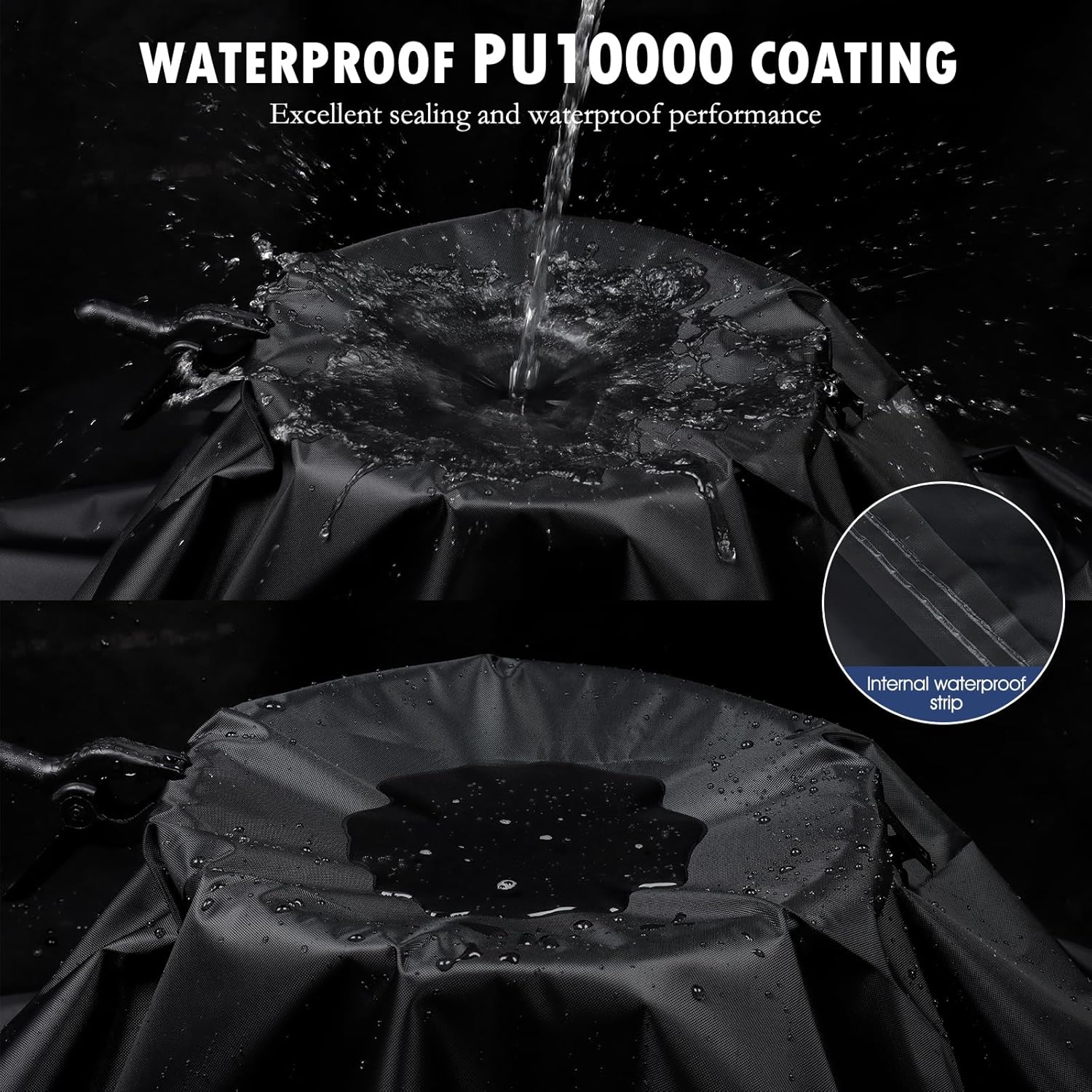 【100% Waterproof】Our boat cover has a triple-layer waterproof PU coating, resisting up to 10000 Pa water pressure. Sealed seams with waterproof tape prevent leaks