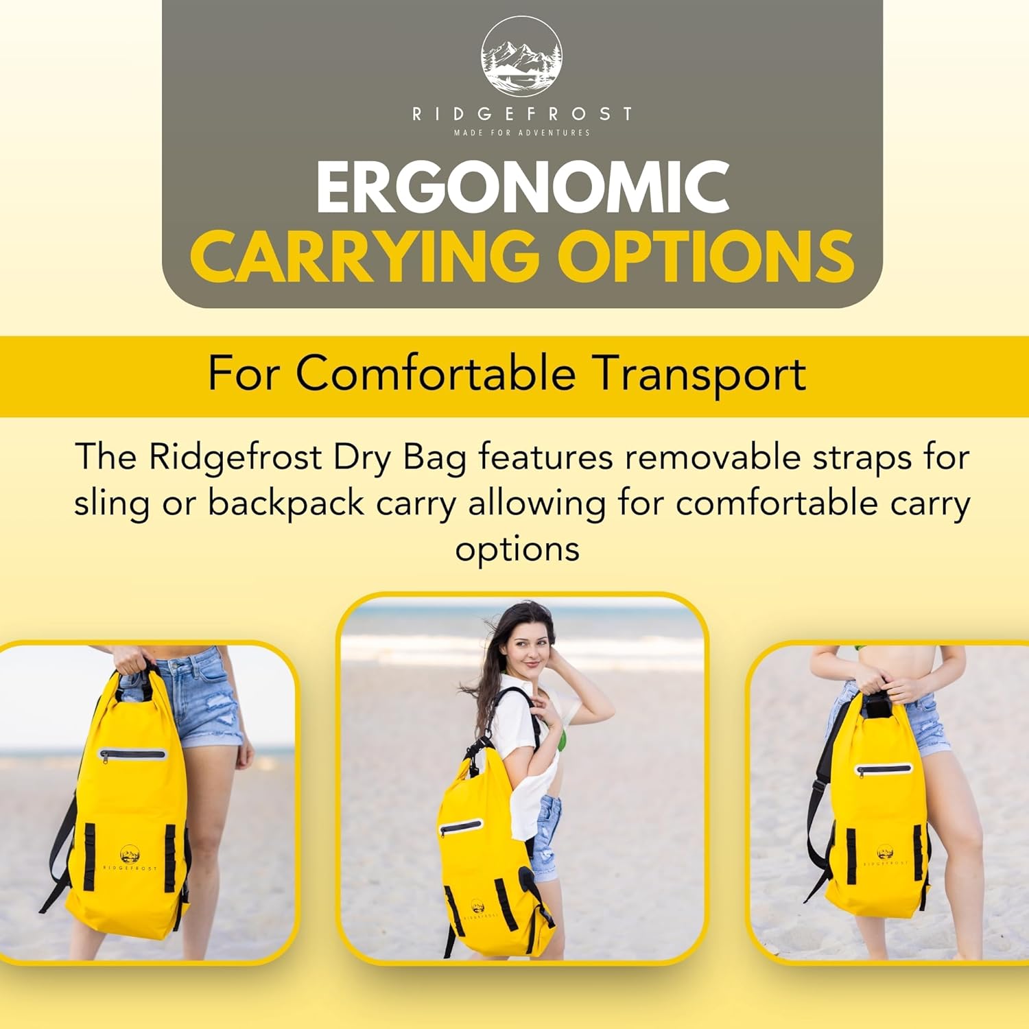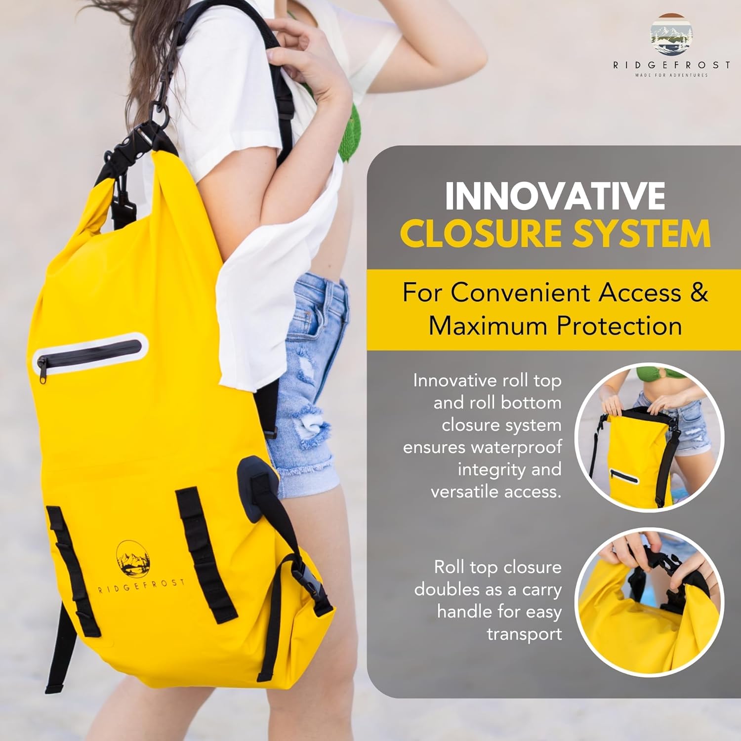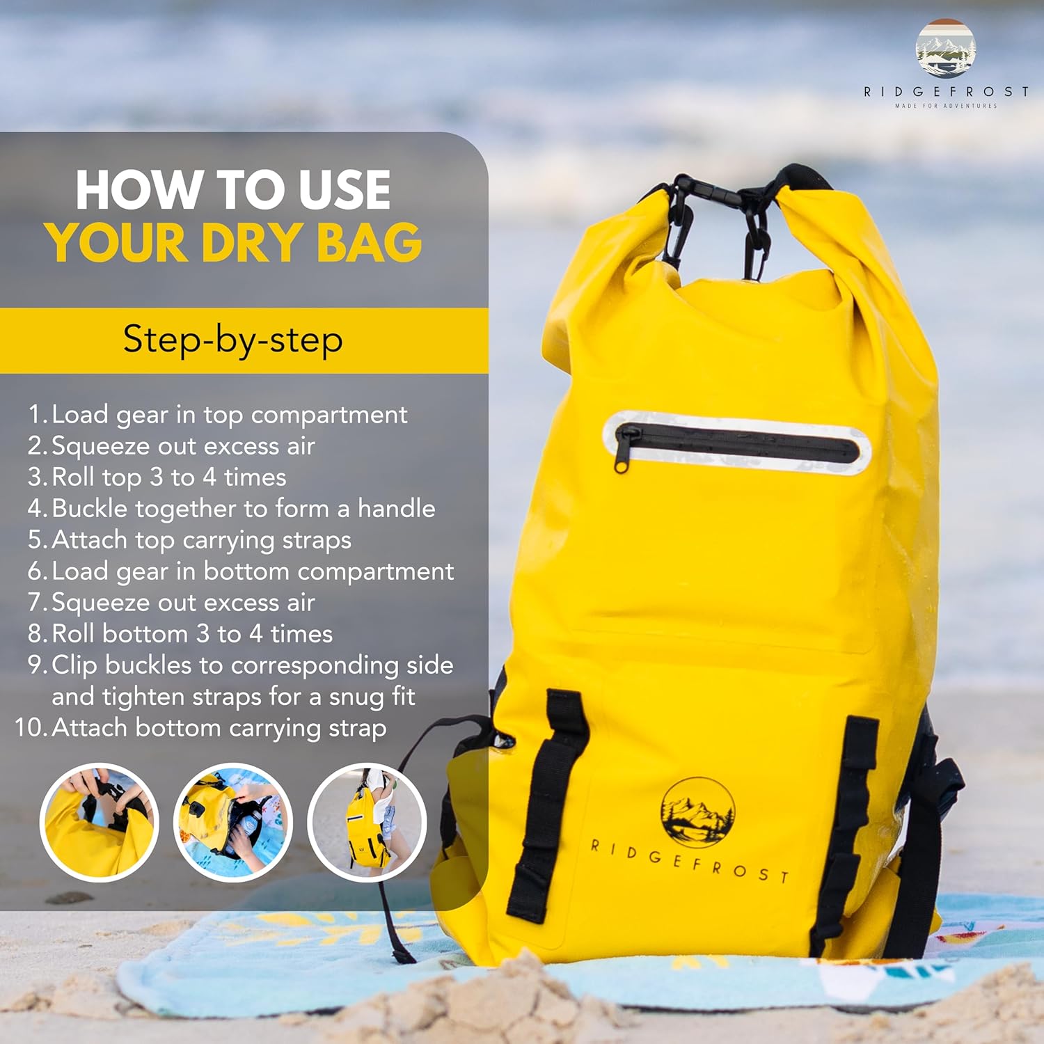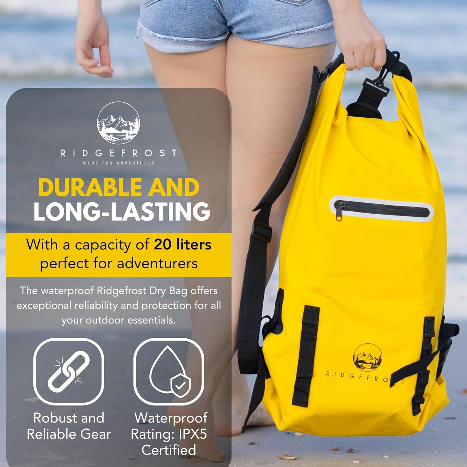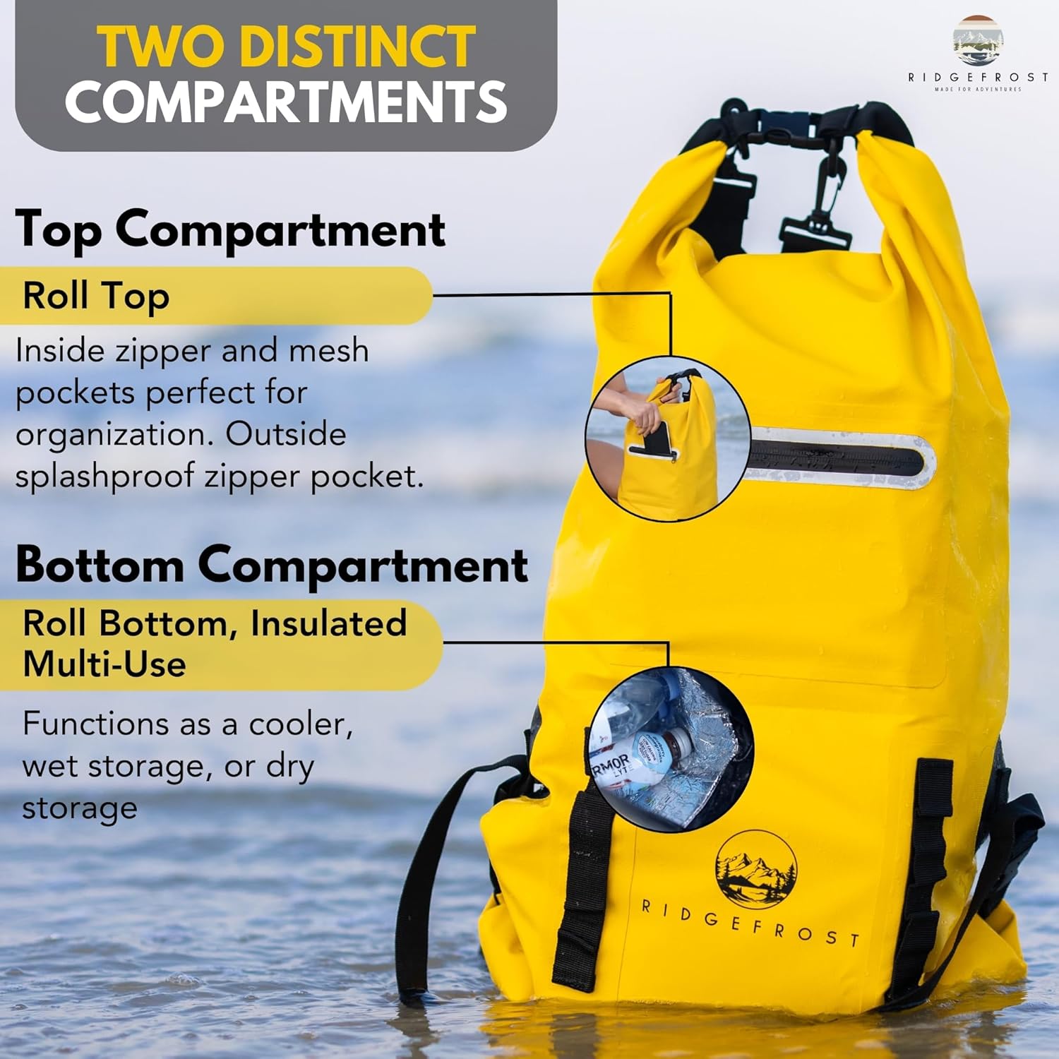 20L Dual-Compartment Backpack Cooler: Get ready for your next adventure with the Ridgefrost 20L Waterproof Backpack Cooler. Designed to keep your gear safe, dry, and organized, this lightweight backpack is perfect for hikers, campers, and kayakers alike. Unlike ordinary waterproof bags, the Ridgefrost stands out with its two separate compartments each with a roll-top and roll-bottom closure making packing a breeze. Whether you’re heading out for a day on the water or a weekend in the mountains, this versatile and durable backpack cooler has got you covered.