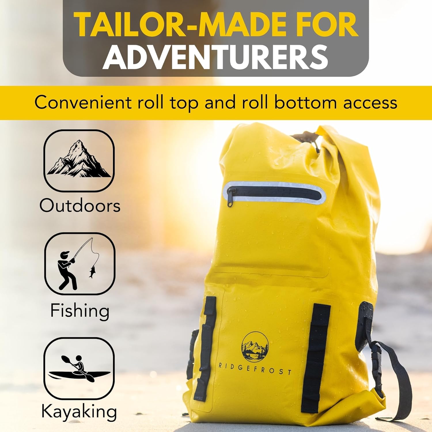20L Dual-Compartment Backpack Cooler: Get ready for your next adventure with the Ridgefrost 20L Waterproof Backpack Cooler. Designed to keep your gear safe, dry, and organized, this lightweight backpack is perfect for hikers, campers, and kayakers alike. Unlike ordinary waterproof bags, the Ridgefrost stands out with its two separate compartments each with a roll-top and roll-bottom closure making packing a breeze. Whether you’re heading out for a day on the water or a weekend in the mountains, this versatile and durable backpack cooler has got you covered.