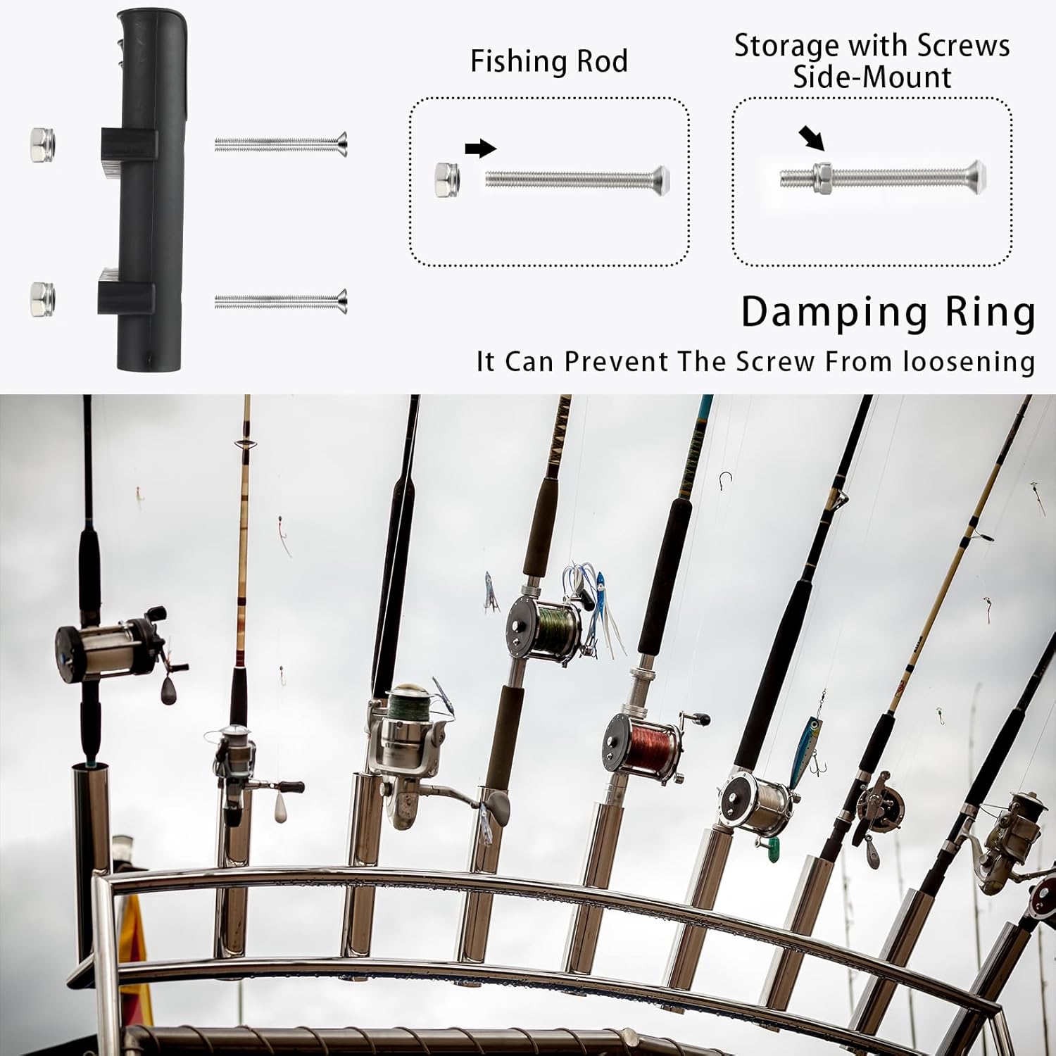 2 pieces fishing rod holders,12 pieces of nuts,12 pieces of screws