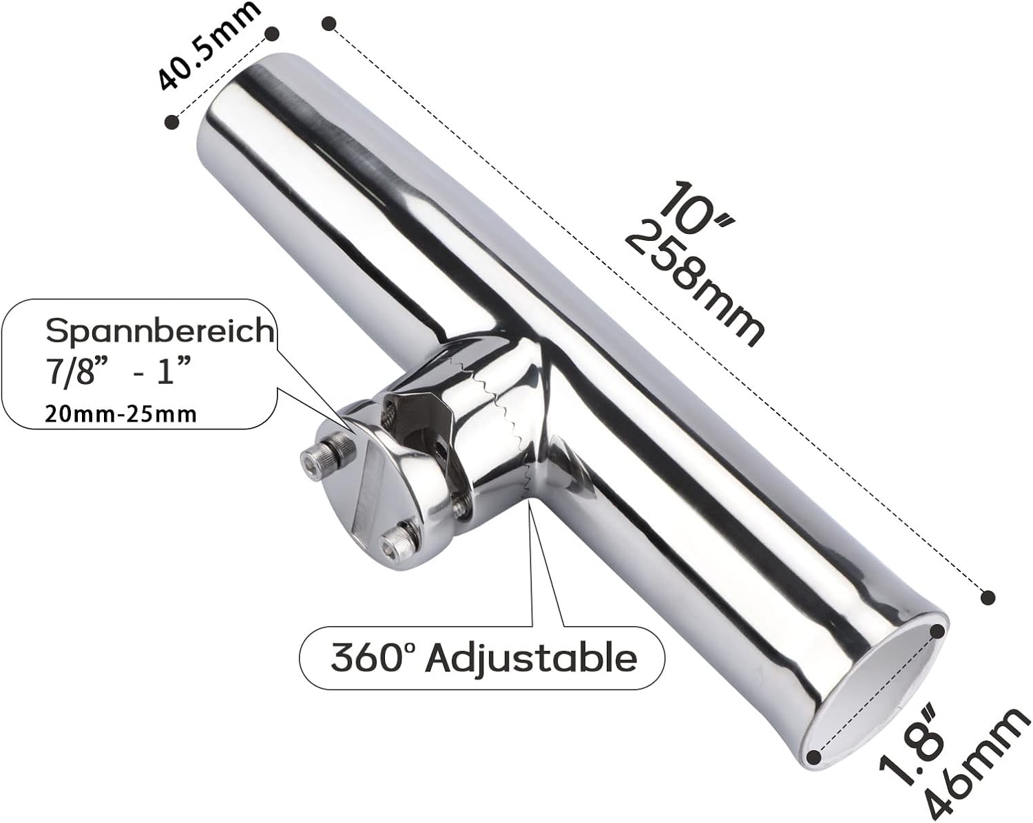 2PCS Tournament Style Boat Fishing Rod Holders, 316 Stainless Steel Clamp on 7/8″ to 1″ Rail, 360 Adjustable Fishing Rod Holder