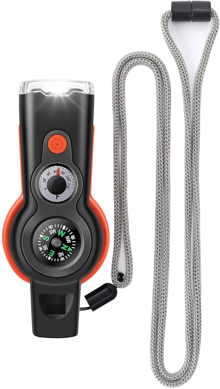 7-in-1 Emergency Survival Function Whistle, Outdoor Multifunctional Tool Safety Whistle with Lanyard, Ideal for Kayaking, Boating, Hiking, Camping, Climbing, Hunting, Fishing, Rescue Signaling