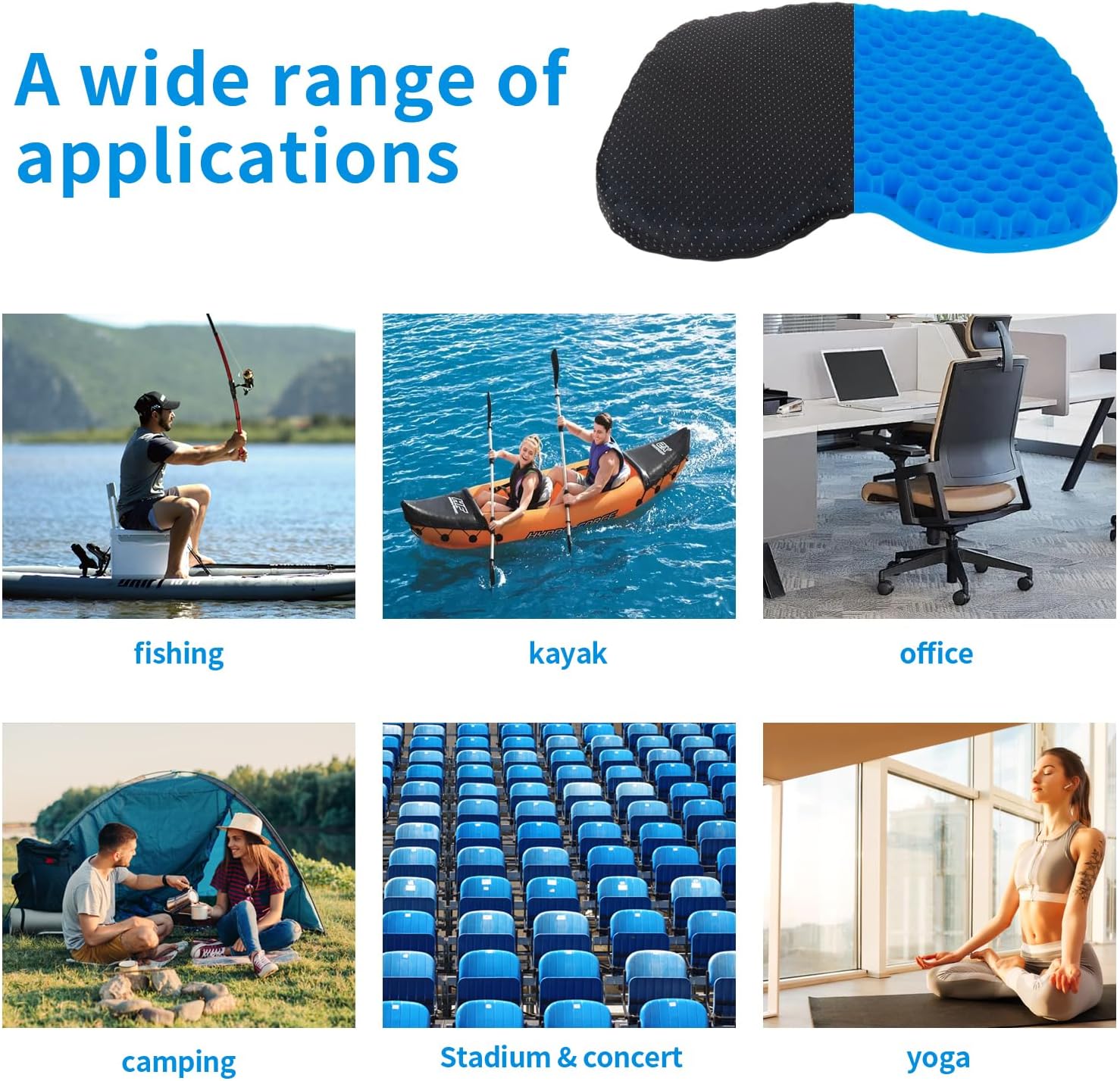 🚣【Wide Application】Versatile and wide application, this cushion is suitable for various water activities such as fishing, canoeing, and stadium seating. The double thicken gel construction provides optimal support and cushioning for long hours of sitting.