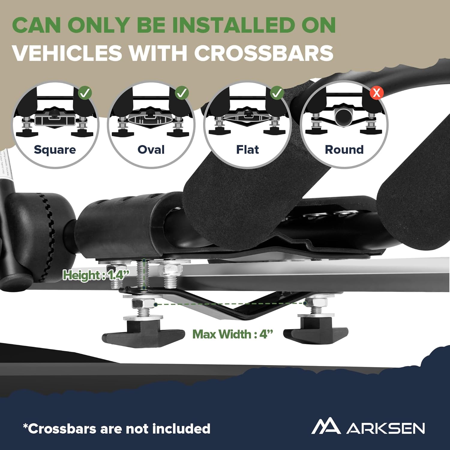 【Simple Structure】- The product consists of two parts, and assembly is simple, only need to match a screwdriver. It also comes with high quality yellow polyester fabrics strap and 10 feet ratchet ropes to secure your items and keep you safe on the highway. It fits most crossbars, such as square, original, and aerodynamic beams, except for round beams.