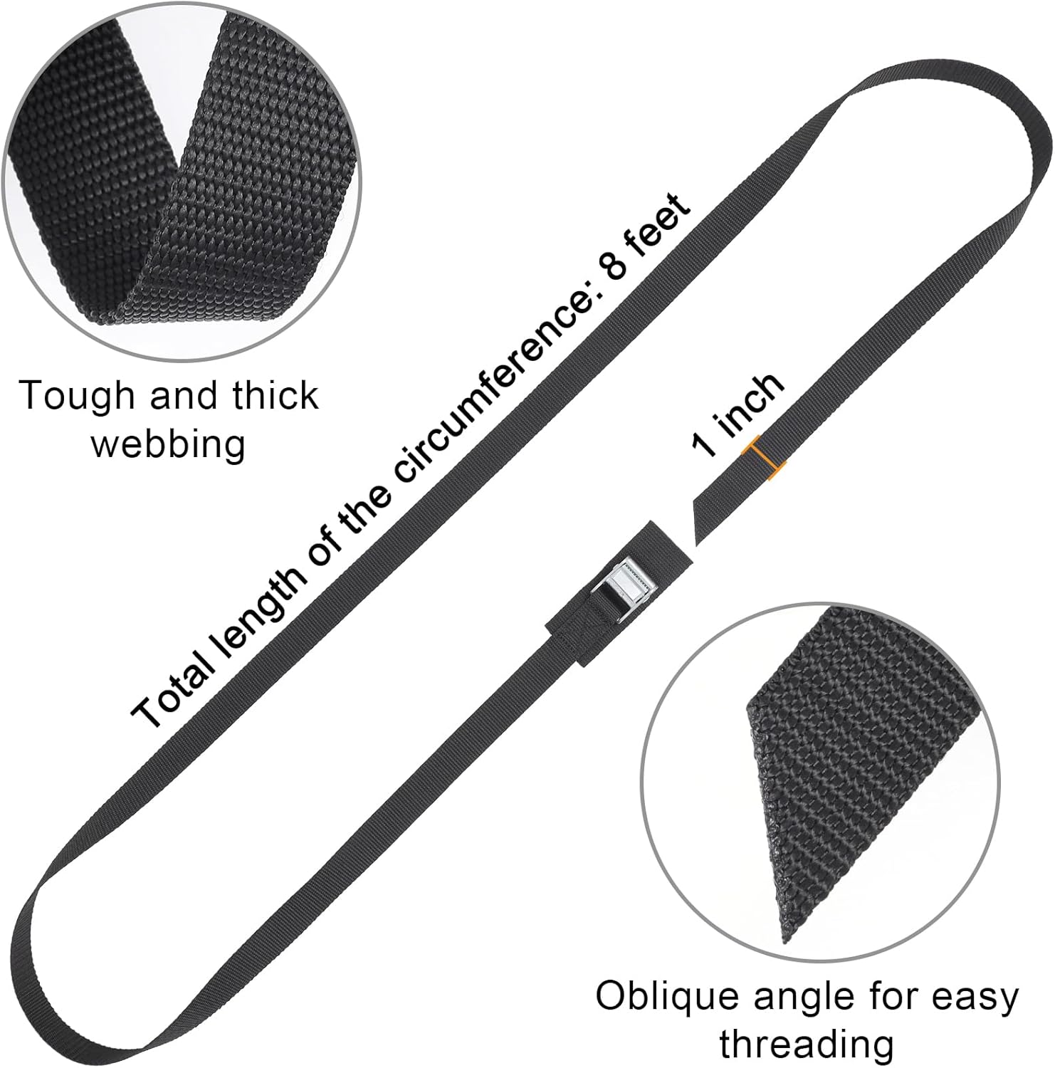 SIZE MEASUREMENT. These lashing straps come in 8ft or 12ft lengths, making them suitable for a range of uses.1 inch width, 4pcs tie down straps per pack.