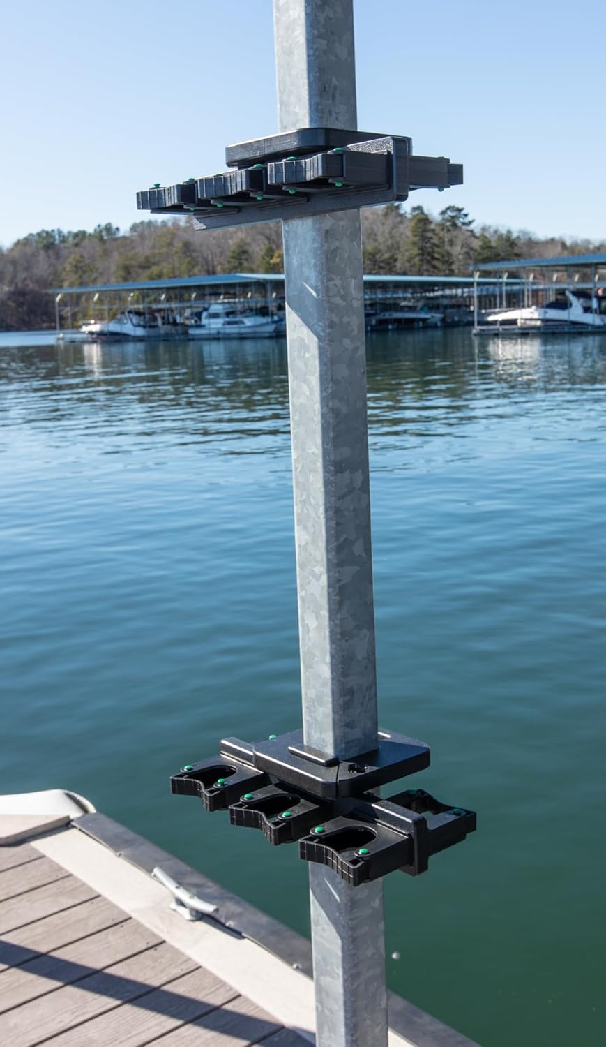 The DockBloxx Banjo Bloxx is a dock-mounted paddle holder that provides a practical storage solution for your kayak, canoe and paddle board paddles. Say goodbye to a cluttered garage or tangled mess of paddles on your dock. With our convenient kayak paddle holder, you can easily store and access your paddles. This versatile dock accessory is also perfect for other items that use pole-based storage, including brushes, brooms and dock hooks. Constructed with durable materials and proudly made in the USA, the DockBloxx Banjo Bloxx is built to withstand harsh outdoor elements, providing a reliable storage solution for years to come. Simply mount it to your dock and keep your paddles organized and ready to go whenever adventure calls. Whether you’re an avid kayaker or just getting started, this paddle holder is a game-changer when it comes to maintaining a tidy outdoor space for all your boat accessories. Don’t let disorganized paddles get in the way of your next adventure – invest in this kayak must-have today!