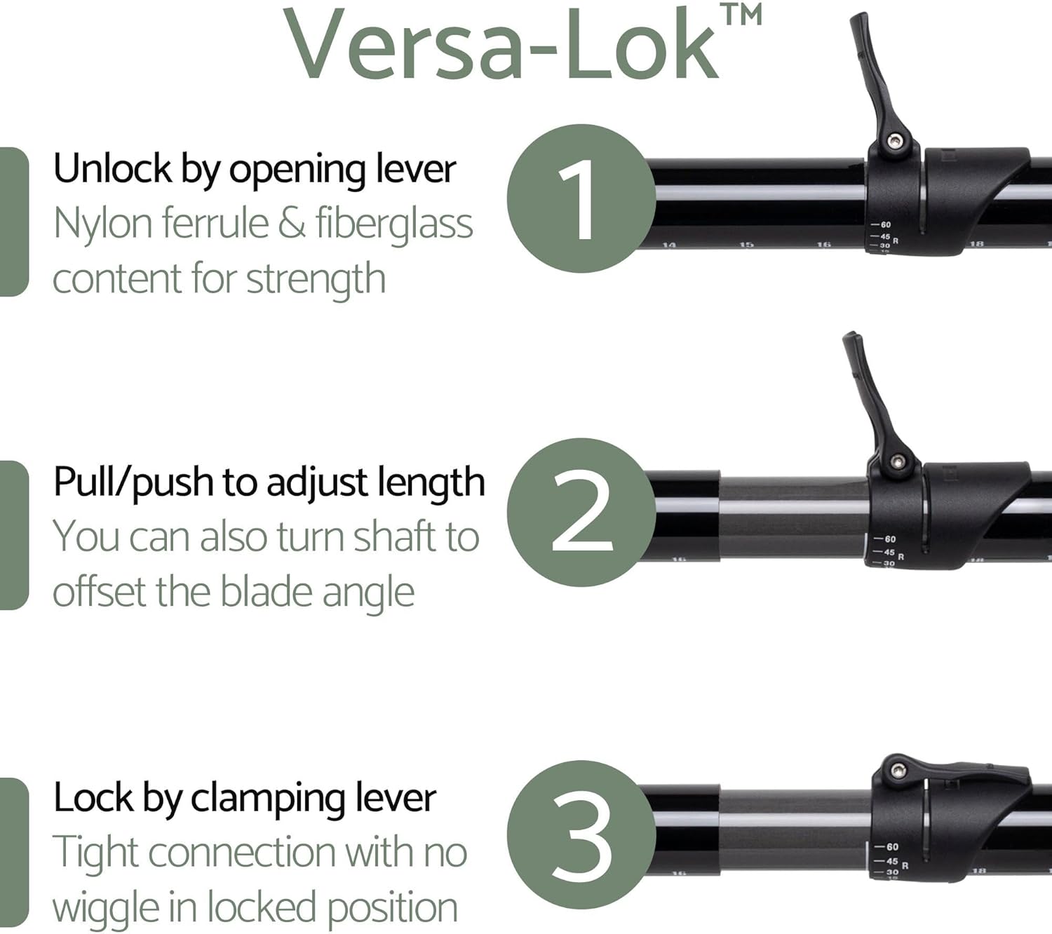 Versa-Lok adjustable shaft gives a snug, wiggle-free fit and offers 15cm of additional length and infinite feathering options