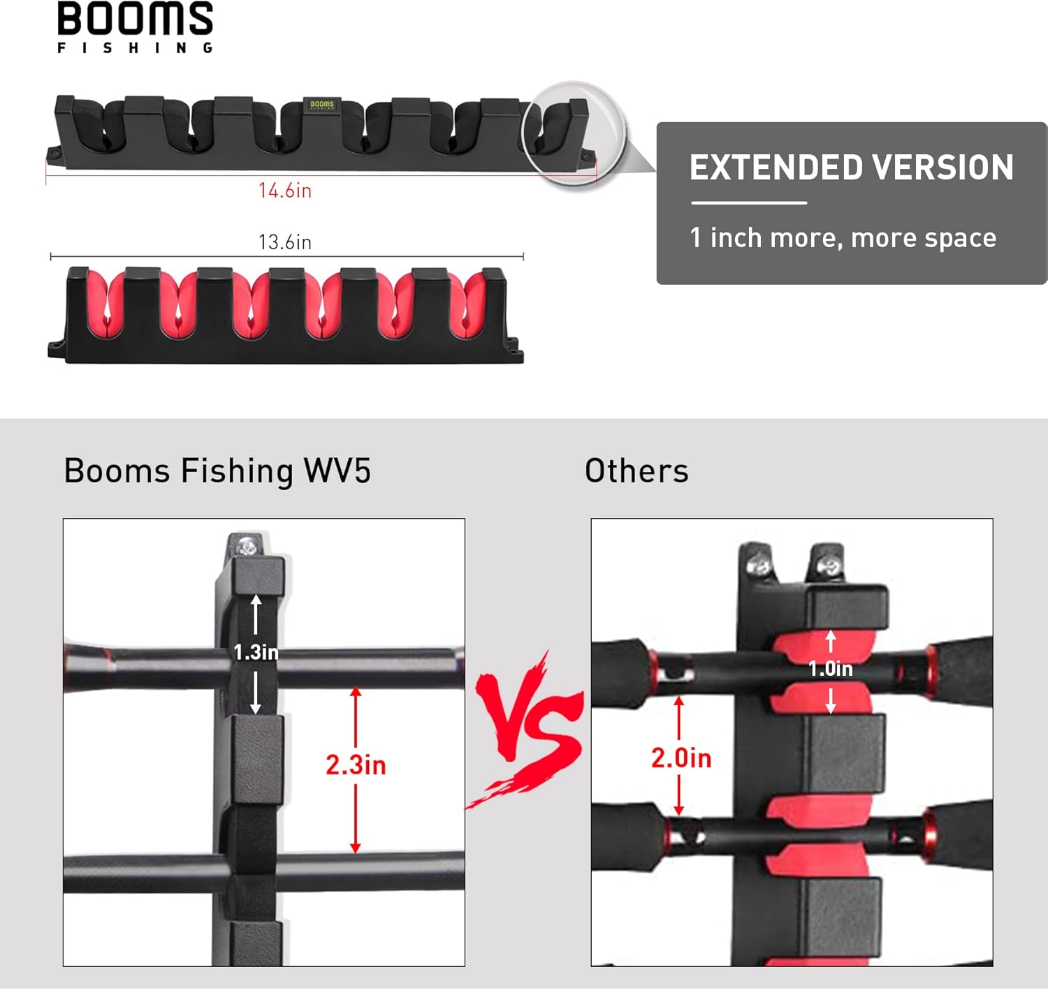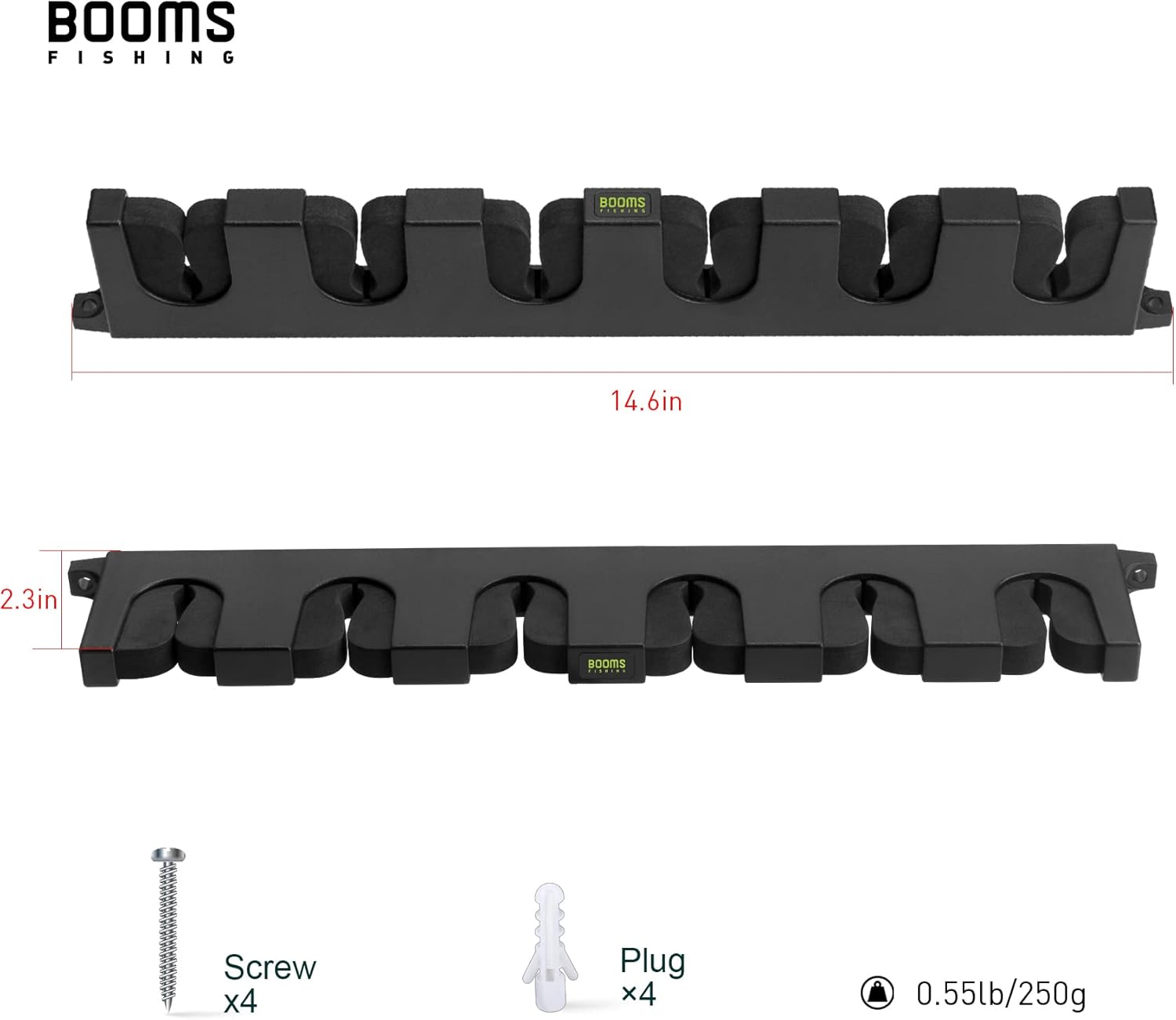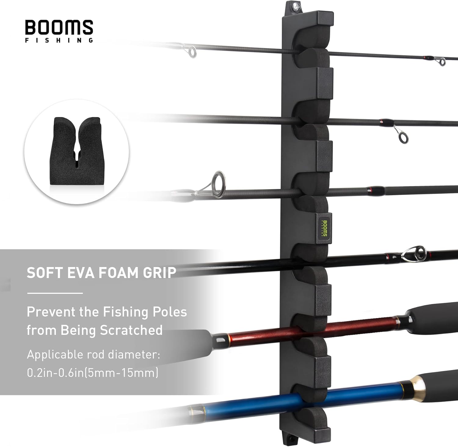 Booms Fishing WV5 Horizontal Fishing Rod Holders for Garage, Wall Mounted Fishing Rod Rack, Kayak Fishing Pole Holder and Rack, Store Up to 6 Rod and Reel Combo in 14.6″