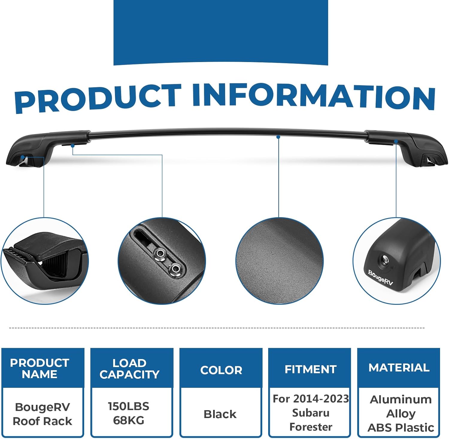 BougeRV Car Roof Rack Cross Bars Compatible with Subaru Forester 2014-2024 with Lock (Not Fit Wilderness), Aluminum Cross Bar for Rooftop Cargo Carrier Luggage Kayak Canoe Bike Snowboard