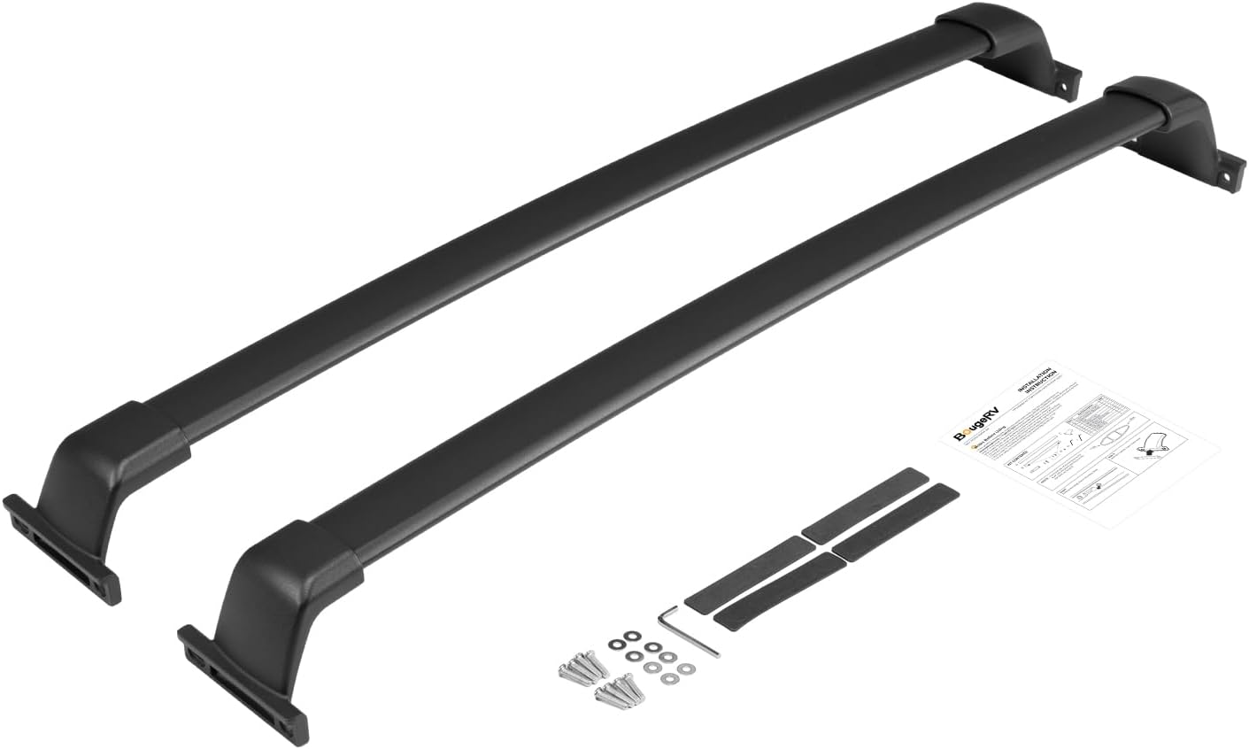 Easy Installation: No drilling or cutting is required. BougeRV cross bars attach to the inside of the roof rails with rubber inserts for added protection. The front crossbar is longer than the rear to accommodate the vehicle’s size