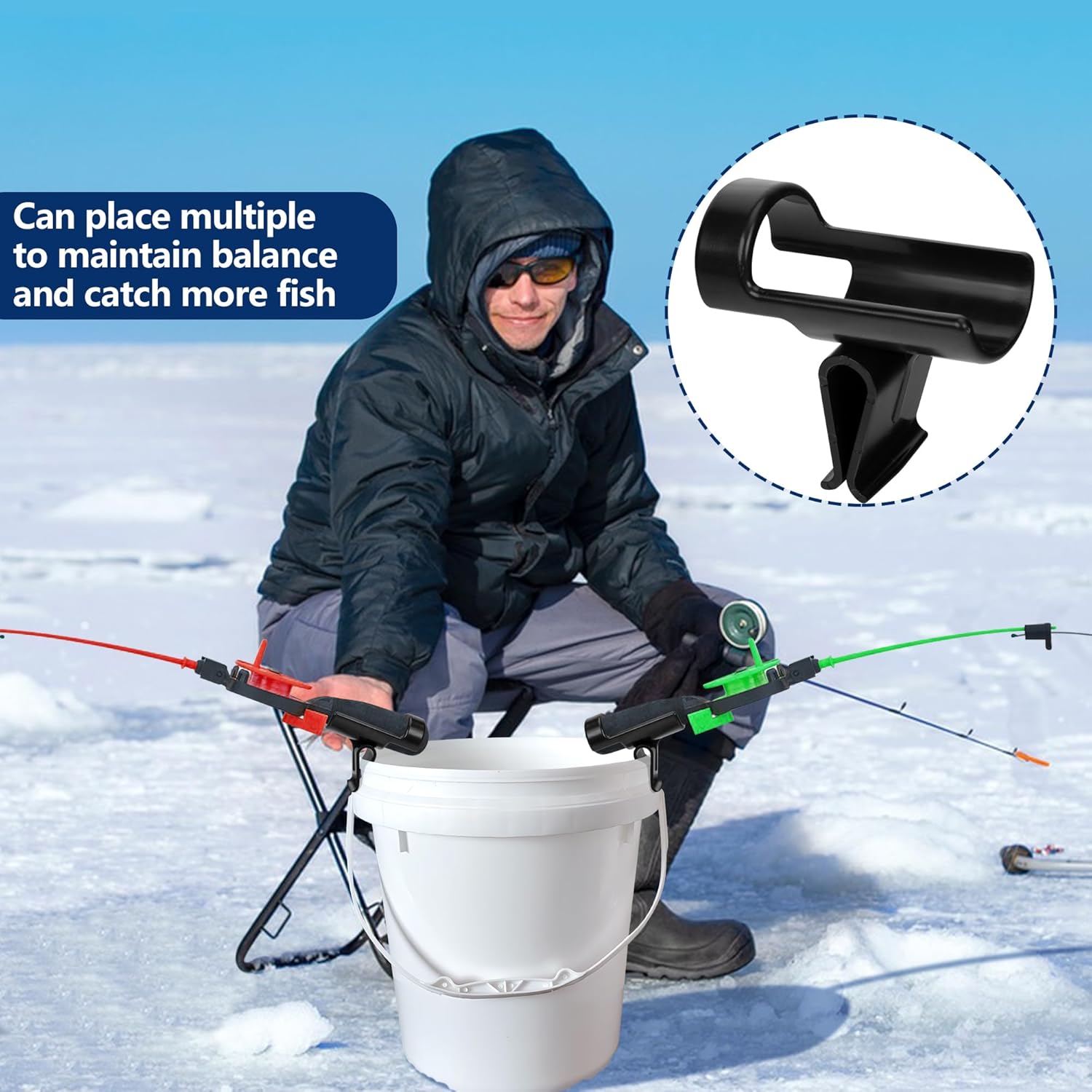 (1)Suitable for all types of fishing rods, used to fix fishing rods on ice fishing buckets when fishing by the river, lake or seaside, which can free your hands.