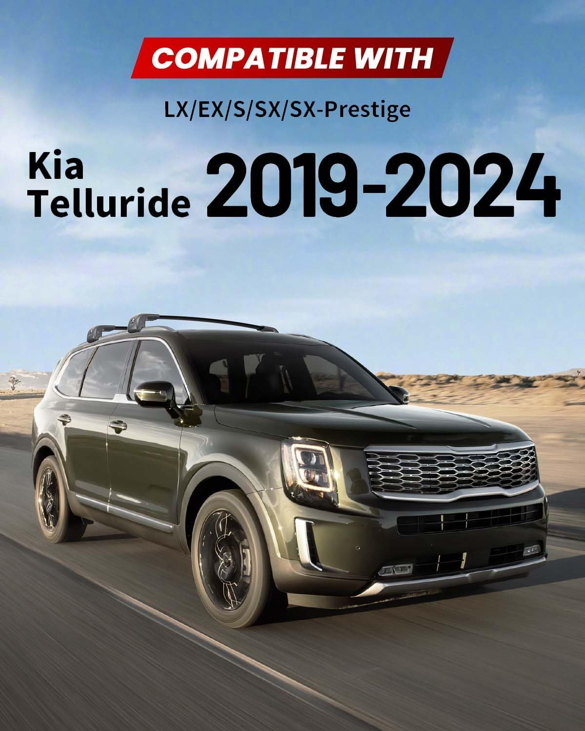 Vehicle Compatibility: Roof rack crossbars are designed specifically Compatible with KIA Telluride LX/EX/S/SX/SX-Prestige 2019-2024. Please check your vehicle’s Year, Make and Model before purchase