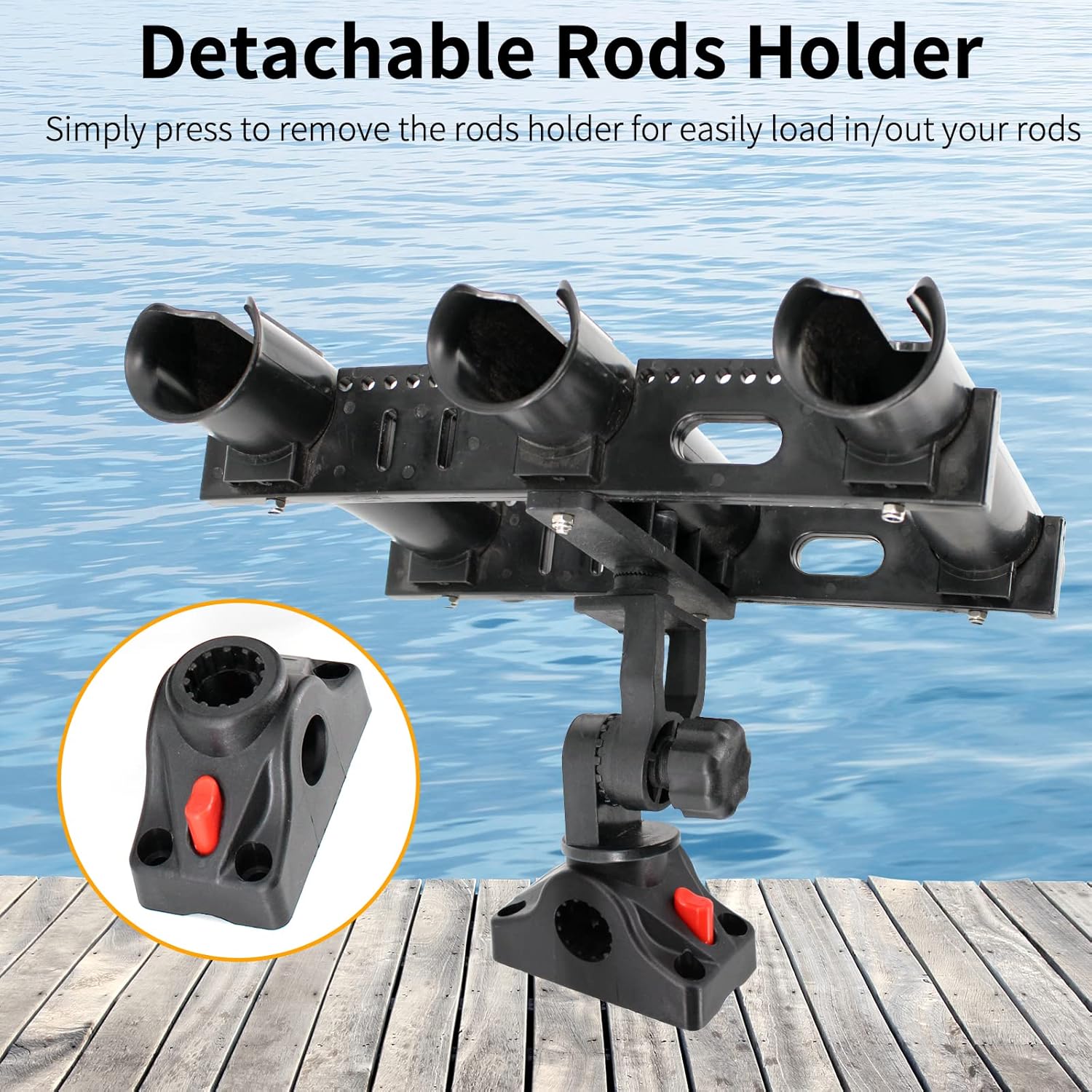 ใ€๐‚๐จ๐ง๐ฏ๐ž๐ง๐ข๐ž๐ง๐ญ ๐ƒ๐ž๐ฌ๐ข๐ ๐งใ€‘This triple fishing boat rod holder not only protects your rods from damage during transport, but also makes it easier for you to fish. Allows quick access to your baits and tools.