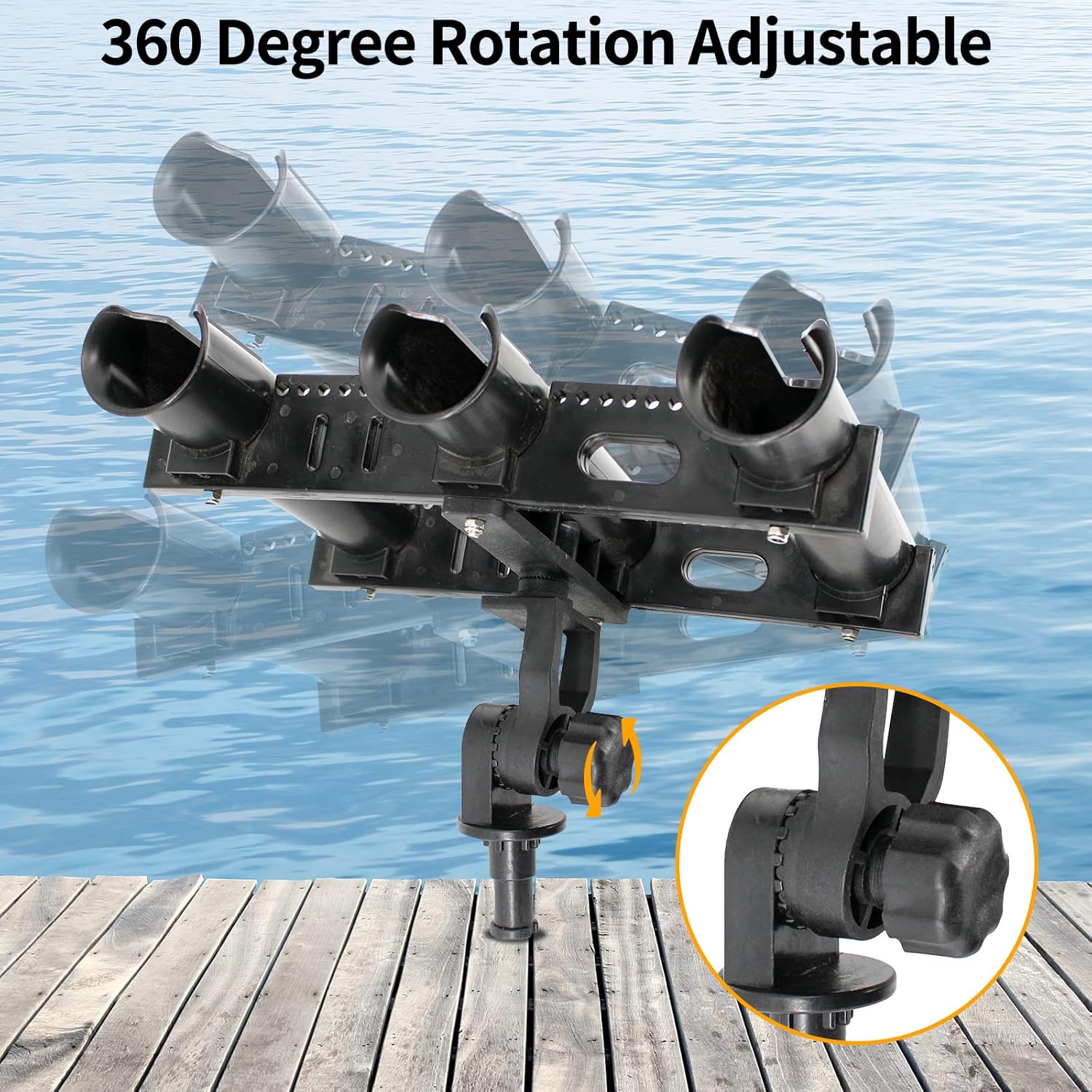 Fishing Boat Rods Holder with 360 Degree Rotation Mount Bracket, Fishing Rod Rack Holder for Boat Kayaks Canoe, Black