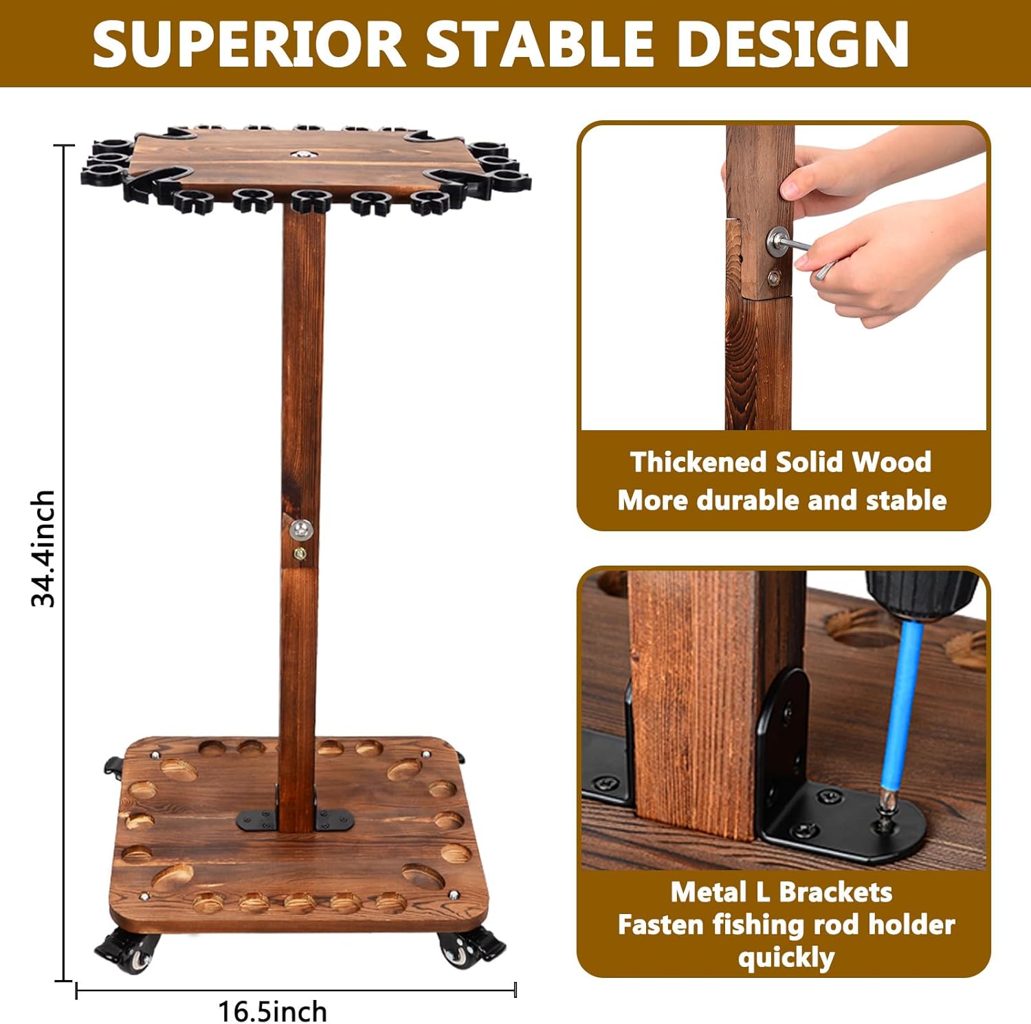 Made of solid wood, can enhance the stability, to avoid shaking, and thus improve the overall quality and durability of the fishing rod holder.