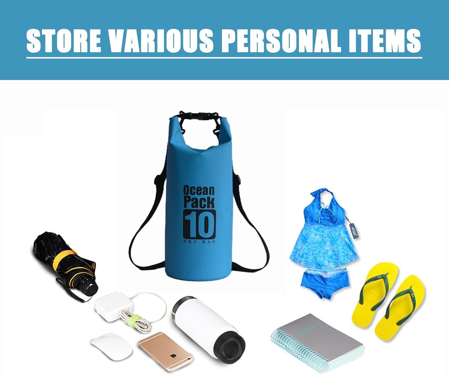 Versatile Sizes for Every Adventure: Available in 10L and 20L sizes, our dry bags are perfect for various outdoor activities. The 10L bag is ideal for day trips and personal items, while the 20L bag offers ample space for longer adventures or multiple users. Both sizes are designed to float when properly sealed, providing extra safety for your gear.
