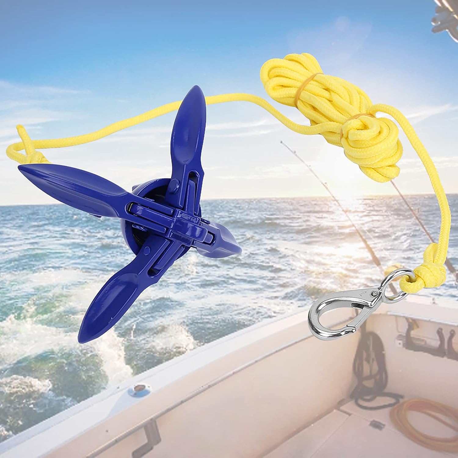 Foldable Kayak Anchor, Kayak Anchor Kit with 16.40 Feet Rope Durable Aluminum Anchor Kit Complete Grapnel Anchor Kit for Small Boats Fishing Kayaks