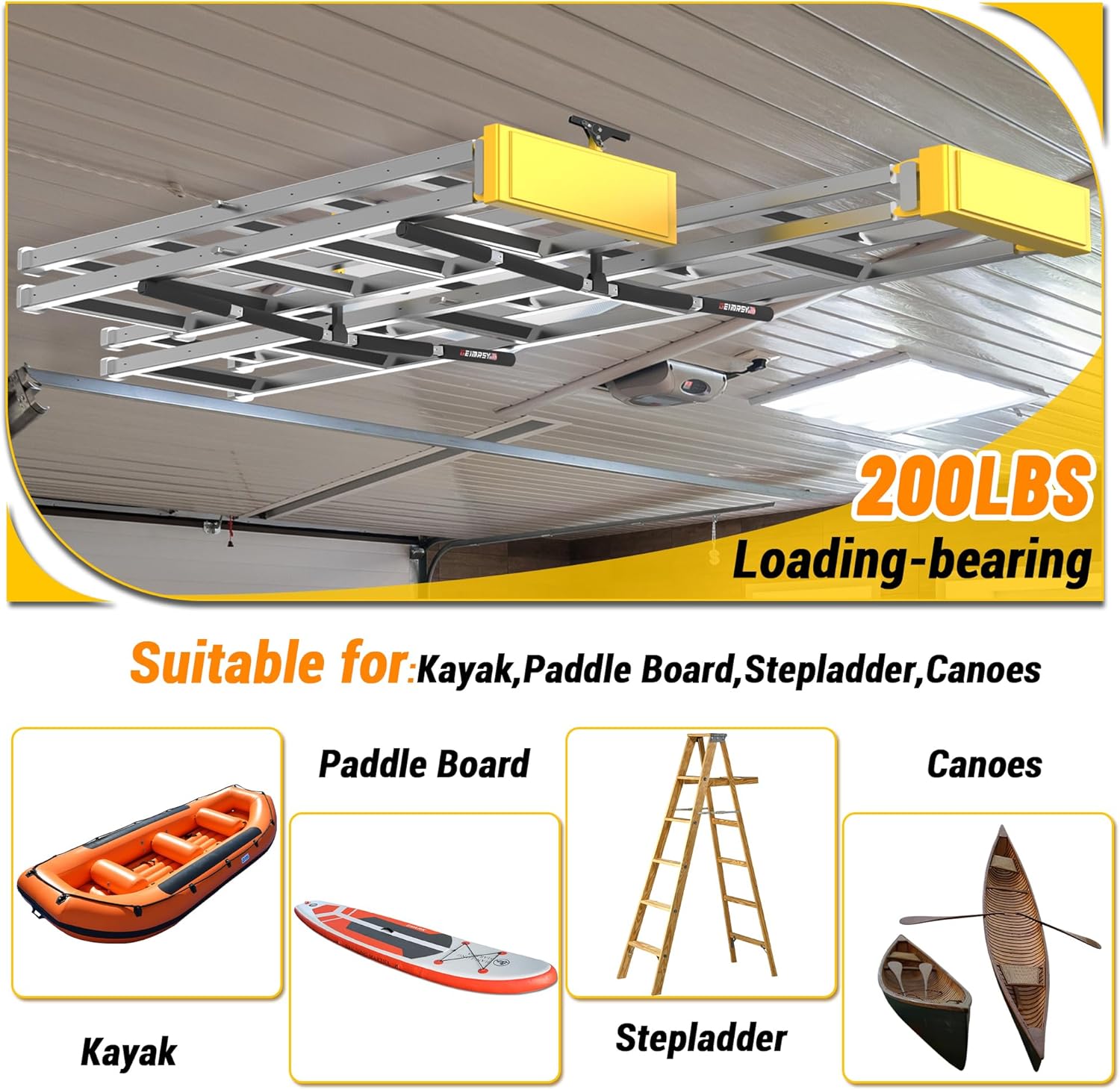 GanFindX Adjustable Kayak Ceiling Storage Rack | Heavy-Duty 200 LBS | Ladder Ceiling Rack System, Garage Mount Hanger for Ladder, Paddle Board, SUP, Snowboard 2 Pack