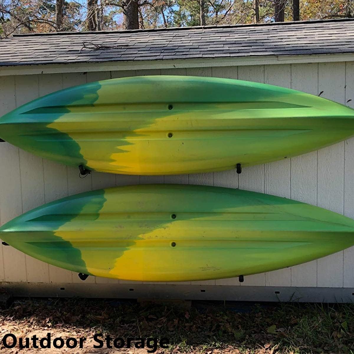 【VARIOUS FUNCTIONS】Kayak storage racks suit for indoor and outdoor use for hanging surfboard, canoe, boat, ladders, folded chairs, bicycles, garden tools, garden hoses, lumber, sport equipment and other bulky items.