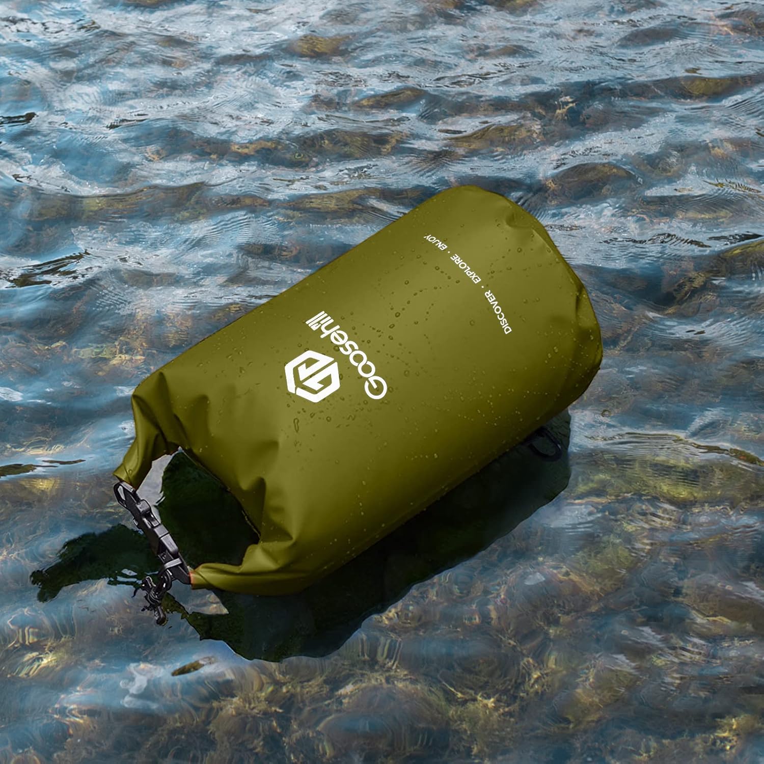 Goosehill Waterproof Bag 5L 10L 20L with Durable Plato 500D PVC Material, Floating Roll Top Dry Bag for Beach/Paddleboarding/Kayaking/Boating/Swimming/Fishing, 2 STRAPS