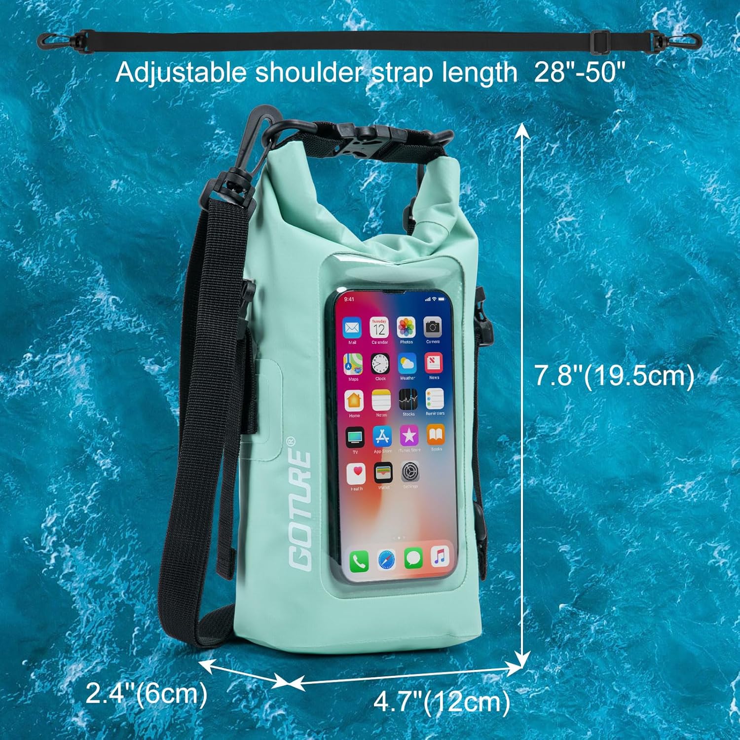 Removable Shoulder Straps: Goture 2L waterproof dry bags have a adjustable shoulder straps, allow for comfortable carrying, and fit most body sizes. Sling the strap over your shoulder to easily tote your gear anywhere
