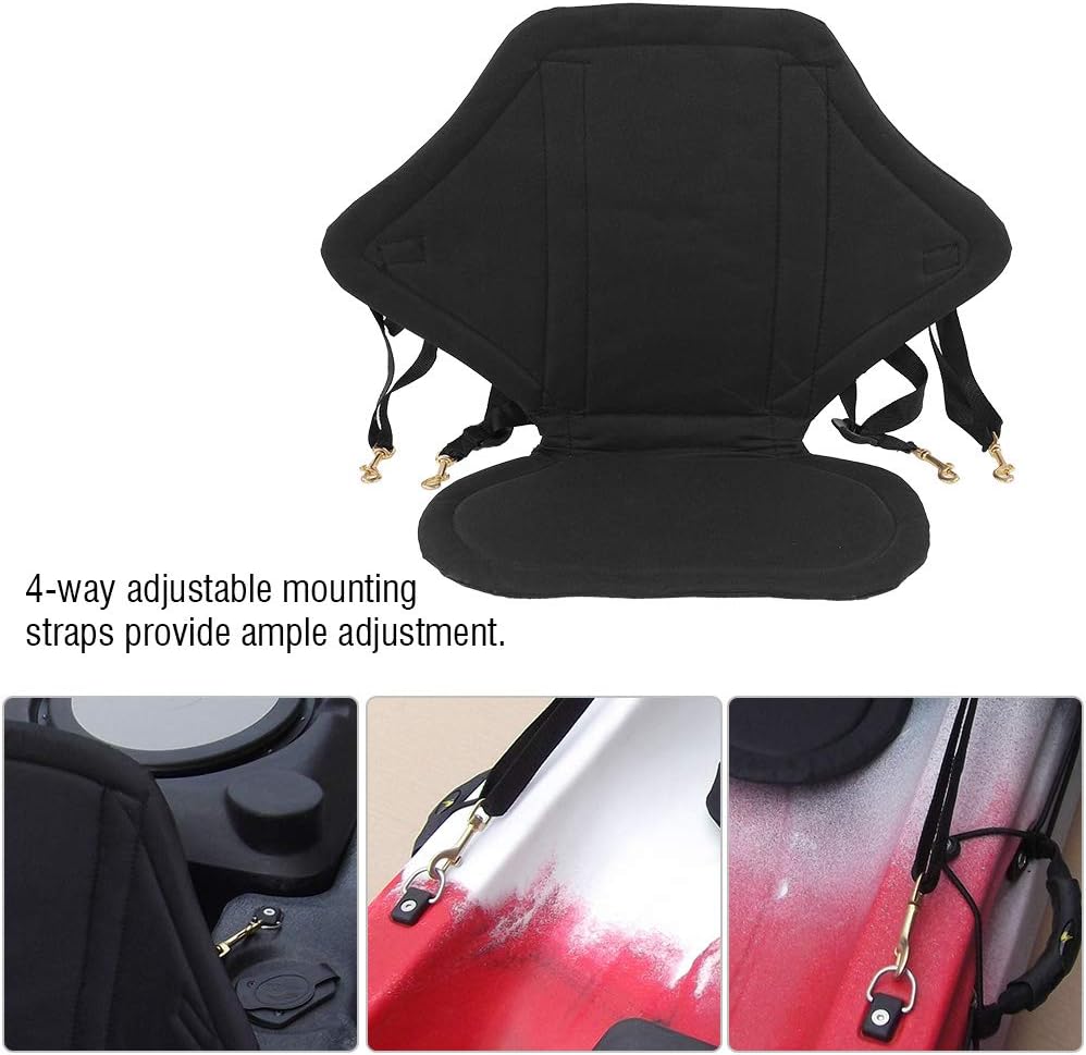 – This cushioned boat seat is equipped with 4-way adjustable reinforced front and rear webbing straps allowing the seat to be fixed in place according to different needs, will fit most kayaks and boats for and longer life.