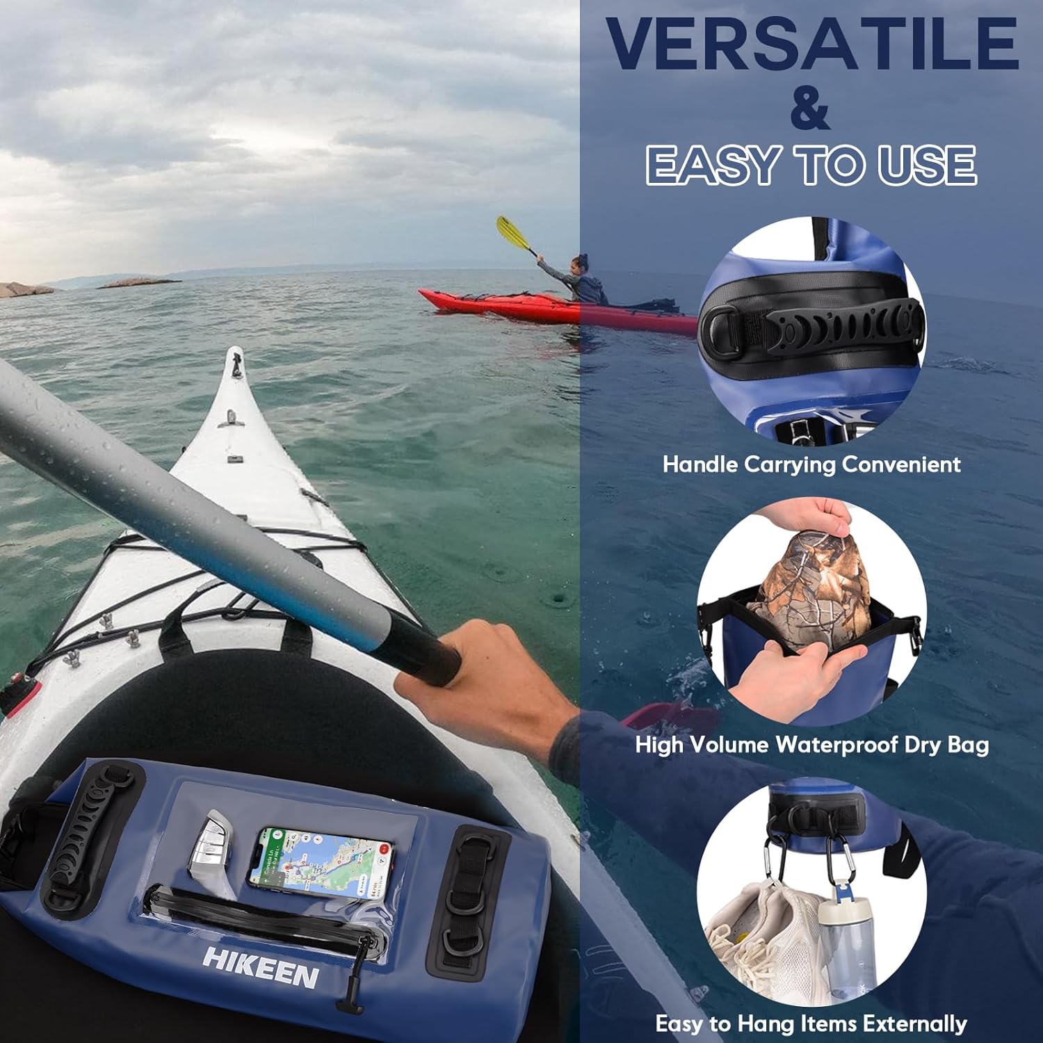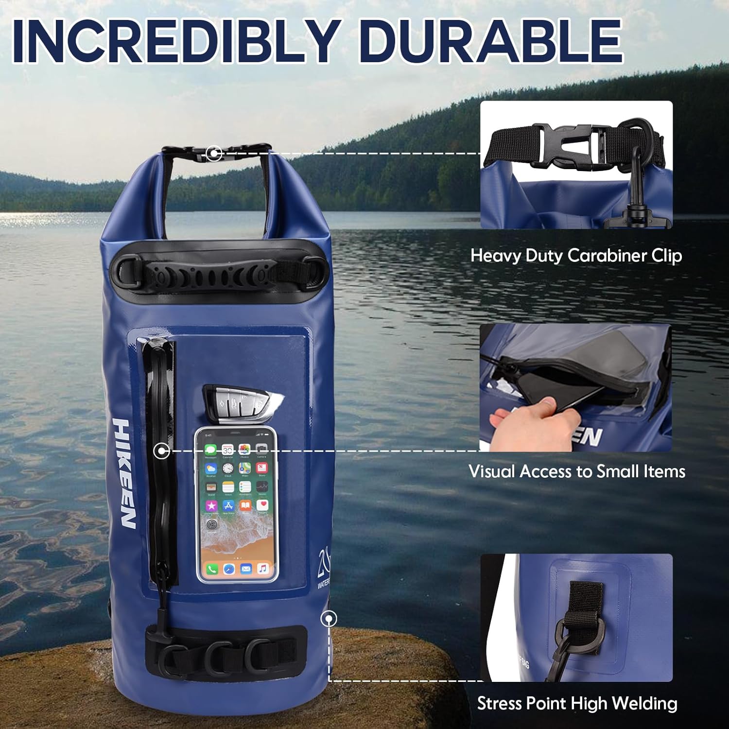 Hikeen IP68 Dry Bag Backpack Waterproof 20L – Waterproof Zip Touch Screen Phone Case Keeps Gear Dry, Lightweight Roll Top Dry Bags Waterproof for Kayaking Boating Camping Beach Rafting with 3 D-rings