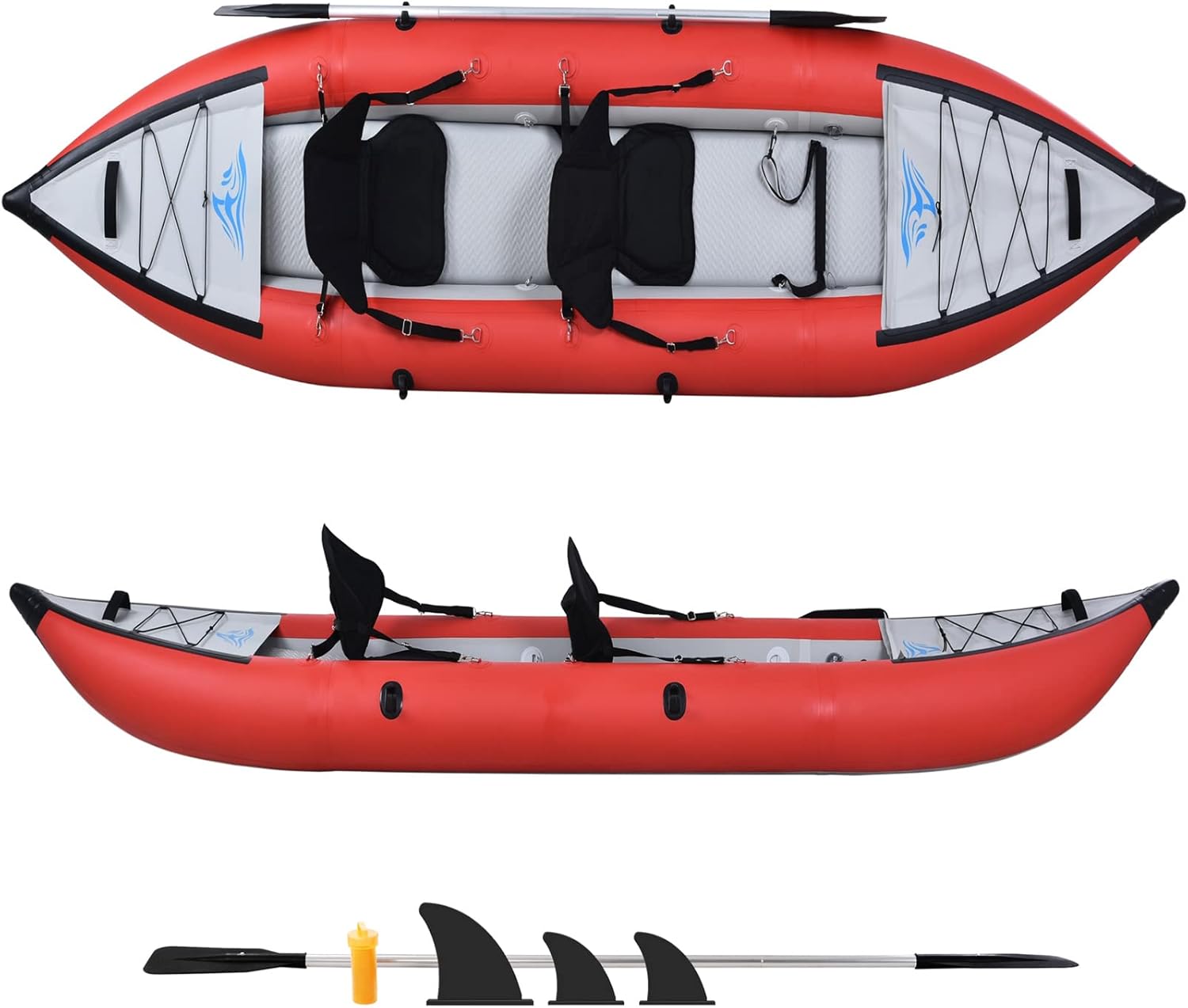 Inflatable Kayak Set with Paddle & Air Pump, Portable Recreational Touring Kayak Foldable Fishing Touring Kayaks, Deluxe Extended Version Tandem 2 Person Kayak