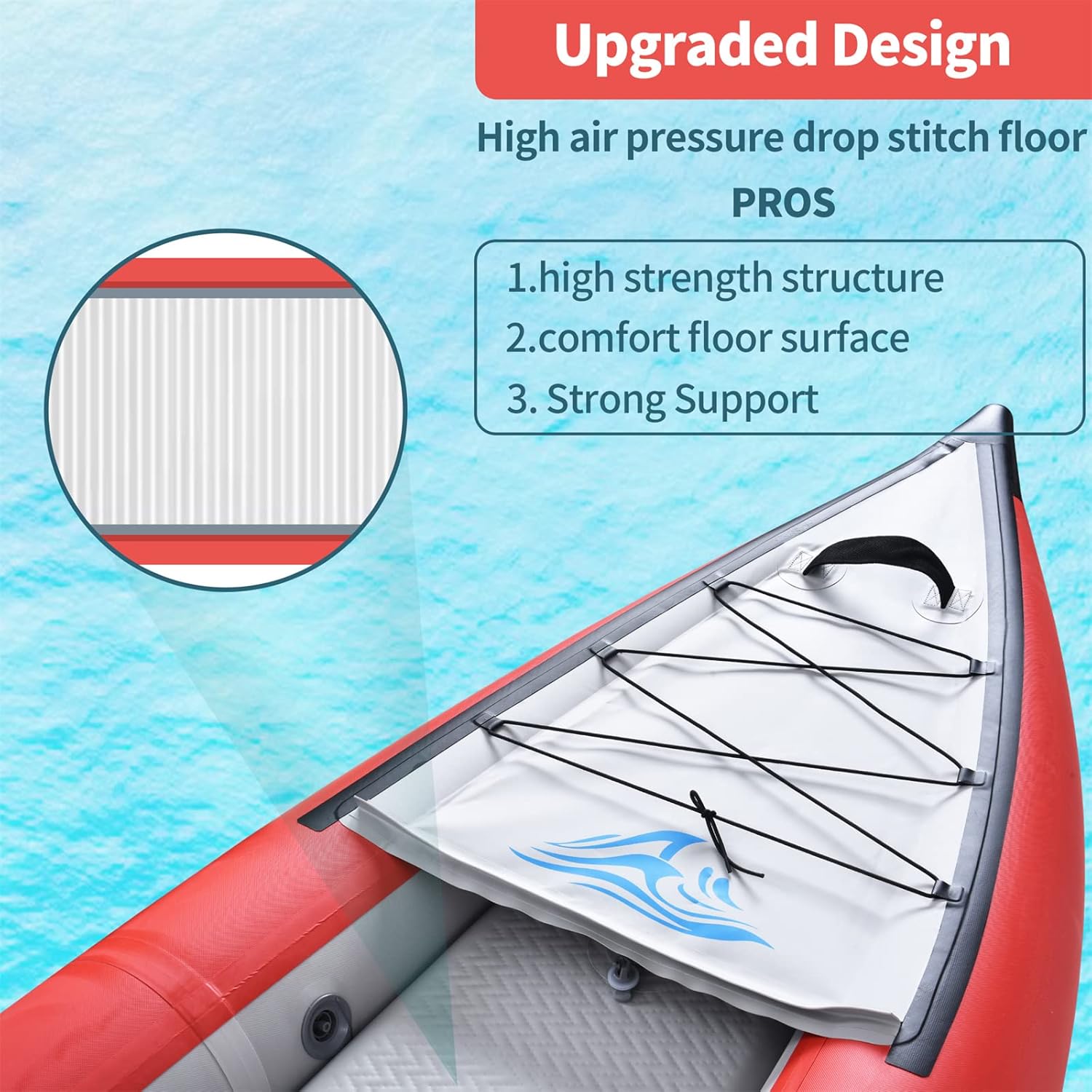 [Superior Performance] Featured with 1 large and 2 small deep fins at the bottom, flexibility and stability are ensured for excellent performance. 2 people are allowed for this inflatable kayak, also you can bring your pet with you together to explore the waterway. The luxuriously extended hull makes the journey experience more spacious and comfortable.