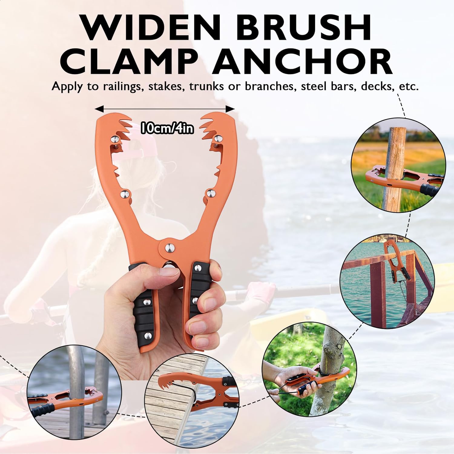 Brush Clamp Anchor with Teeth: Our kayak anchor gripper with sharp teeth, which can adjust the size of the clamp mouth, and makes the gripper firmly grasp the fixed object, such as a tree, a stake or a wooden pole,steel bars, and stone columns, etc. Make you feel at ease boating or fishing.