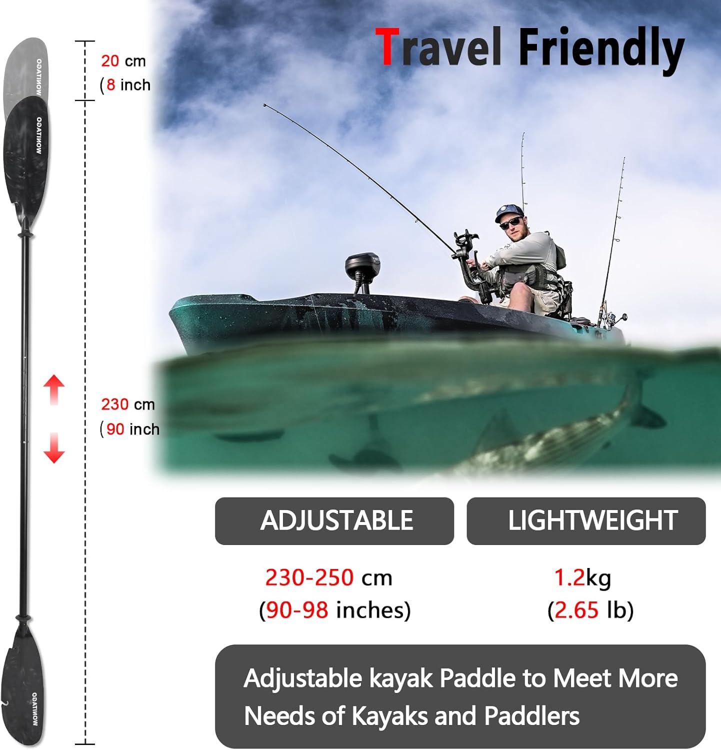 WHY CHOOSE US — Our fishing kayak oars reduce fatigue and maximize performance, allowing you to paddle for longer without discomfort. So, whether you’re exploring the coast, racing down a river, or enjoying a peaceful lake, our kayak paddles are the perfect choice for your next adventure
