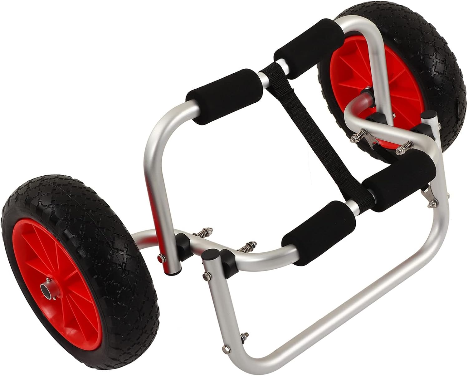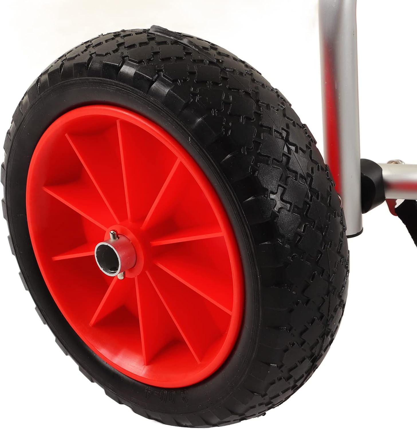 Inflation: The adjustable kayak cart is designed to be inflation, saving you both time and effort. This feature eliminates the need for regular maintenance associated with inflatable wheels, making it easier to transport your canoe without additional hassle