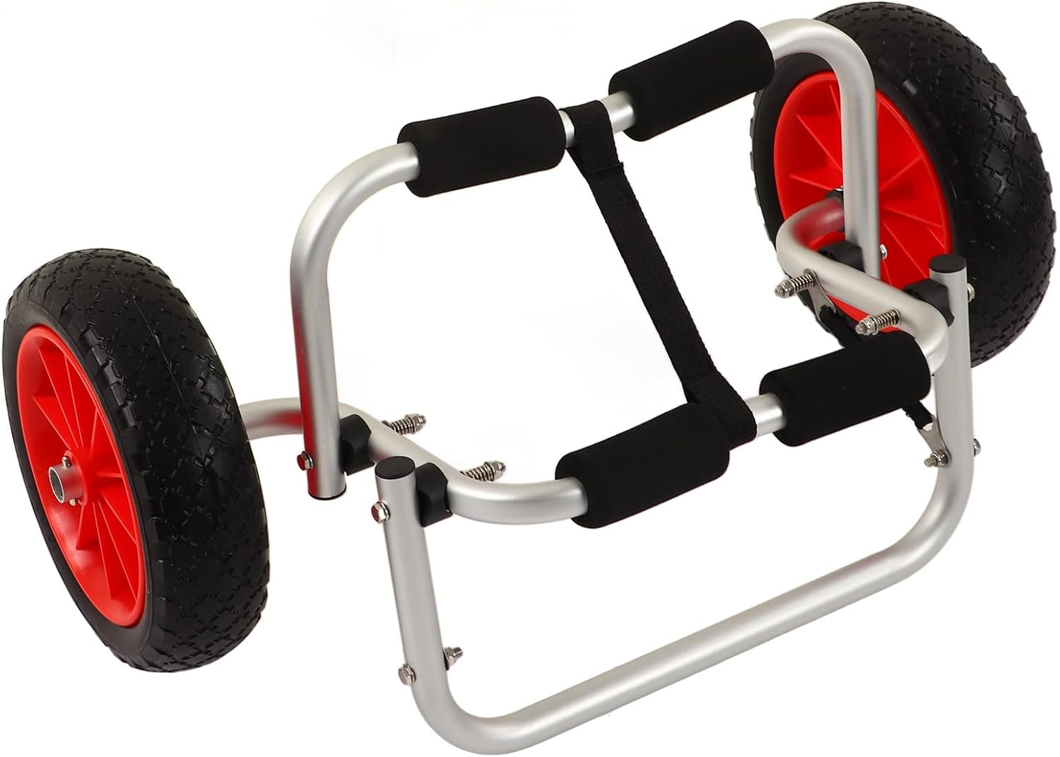 Features:1.Our kayak cart is designed for all terrains to get you kayaking anywhere, never worry about getting a flat tire on your kayak and canoe cart