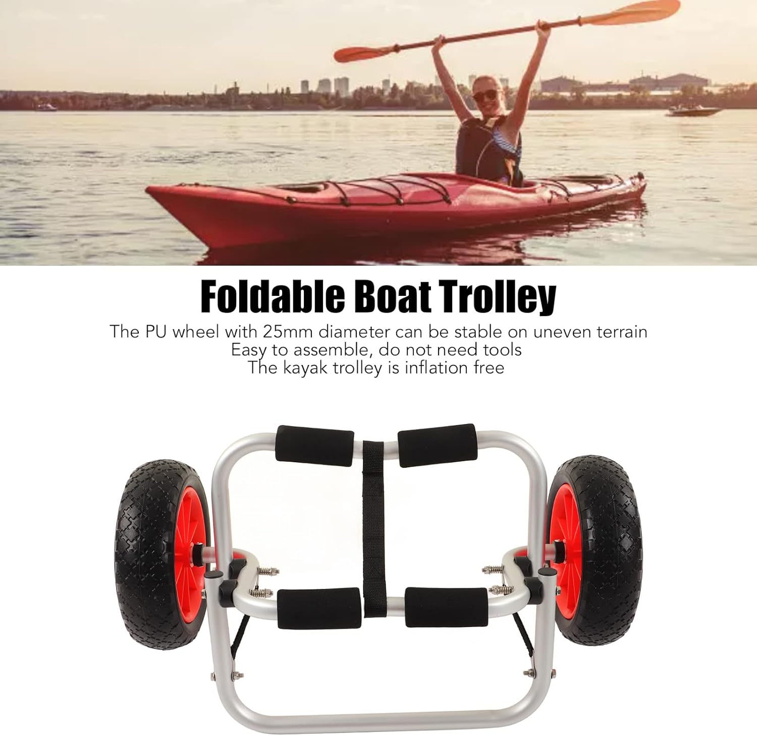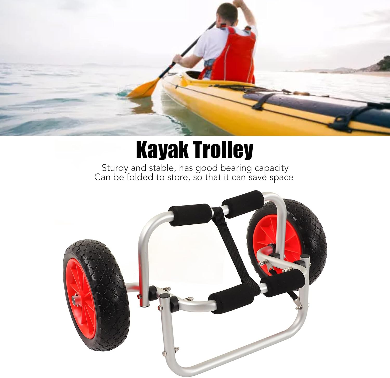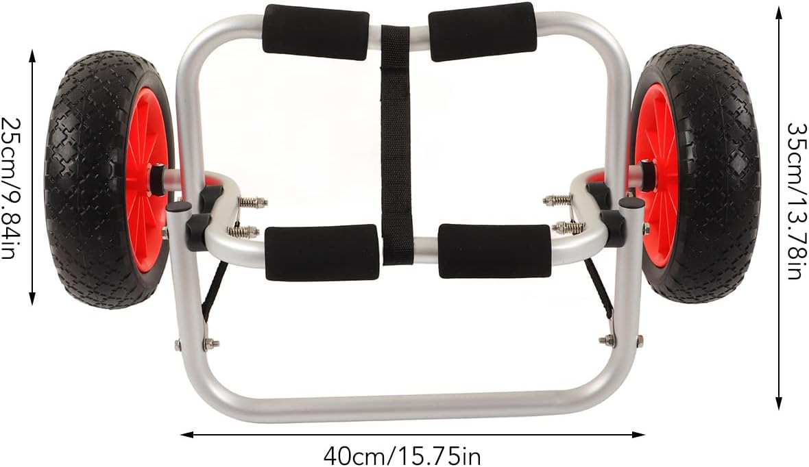 Material: The kayak trolley is constructed from high-grade aviation aluminum for its frame and PU material for its wheels. ensures the trolley is exceptionally sturdy and long-lasting. The design features an integrally formed bend, providing added strength and resilience for heavy loads