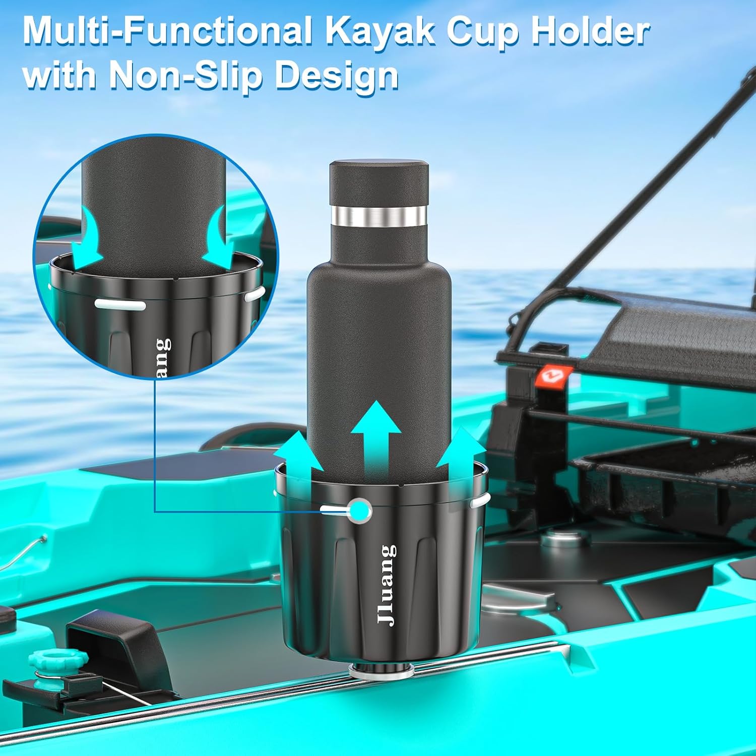 3.【Multi functional cup holder:】Can hold water cups, beverages, bait, mobile phones, etc. Easy installation, simple installation and disassembly, sturdy, suitable for all kayak tracks