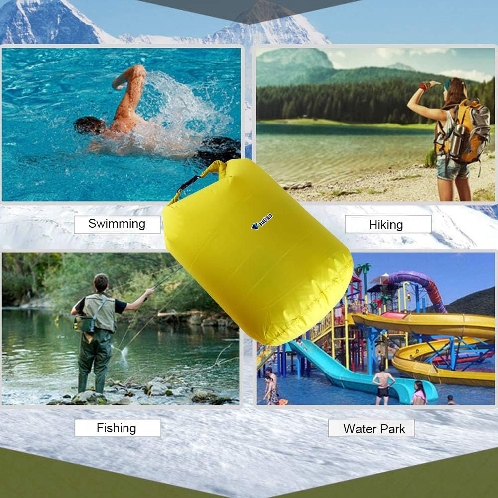 LIGHTWEIGHT & LARGE CAPACITY: 40L size, super ligh-tweight dry sack – Crafted with ultimate lightweight & waterproof 250D PVC cloth, Never deal with heavy or stiff dry bags again!