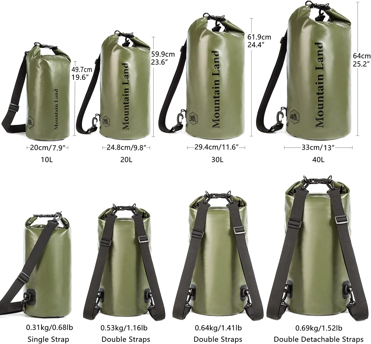 Mountain Land Waterproof Beach Dry Bag 10L/20L/30L/40L Roll Top Backpack Boat Bag Dry Sack for Kayaking Rafting Fishing