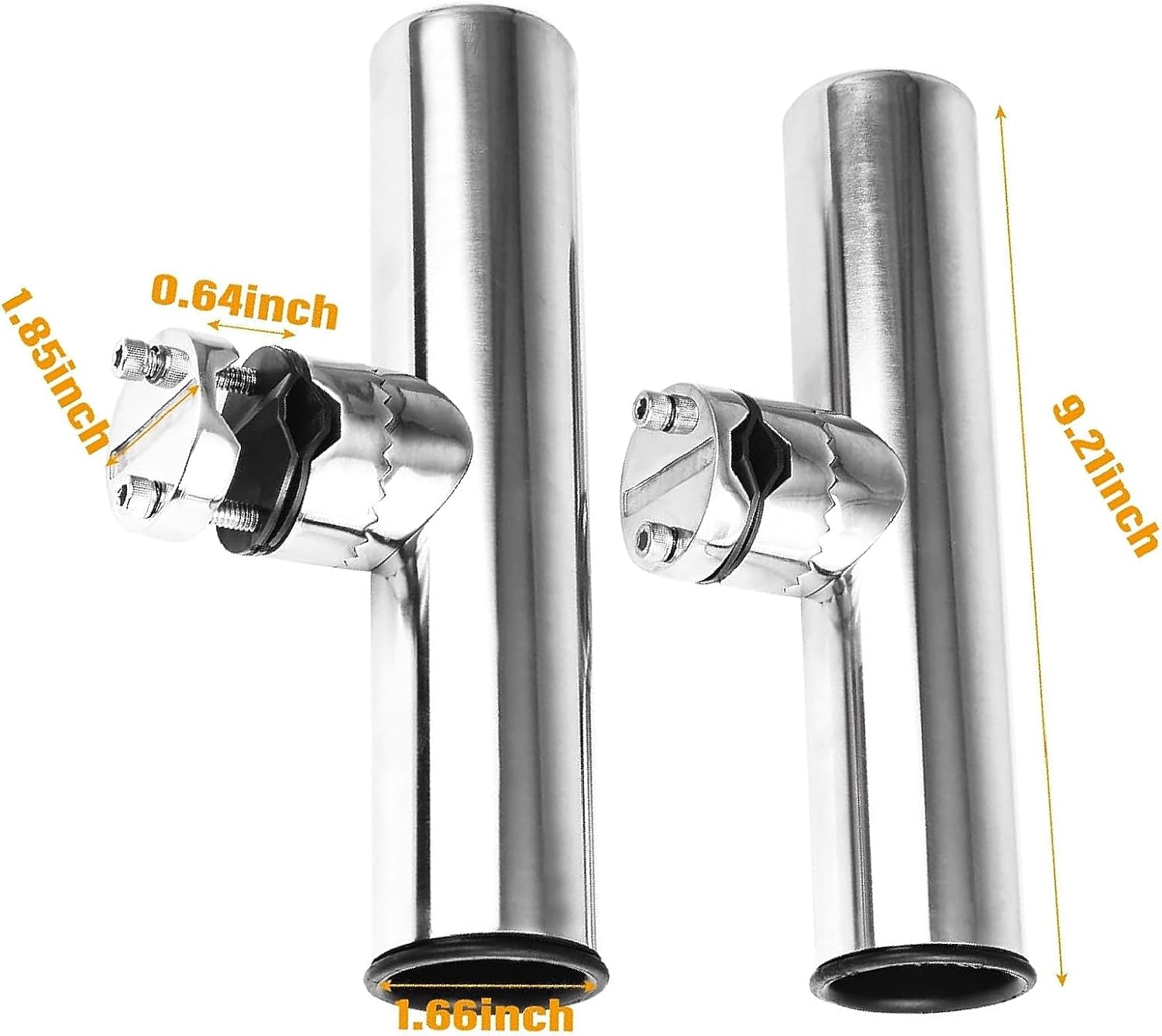 NovelBee 4pcs Stainless Steel Clamp on Fishing Rod Holders with Black Rubber Insert for Rails 7/8″ to 1″
