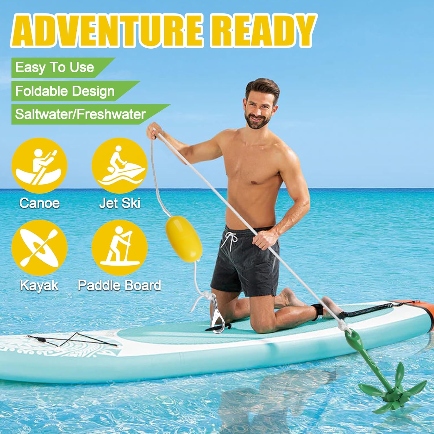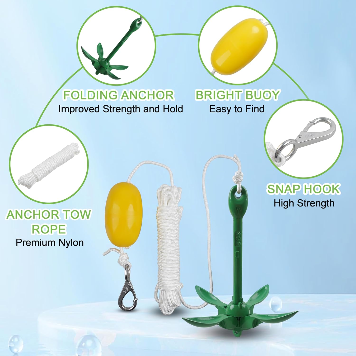 ⛵【Easy to Operate】The kayak anchor is quick to set and retrieve. Simply lift the grappling anchor collar, fold open the 4 flukes and slide the collar back down to lock into place. The bright yellow marker buoy can help you to easily identify and target your position in the water.