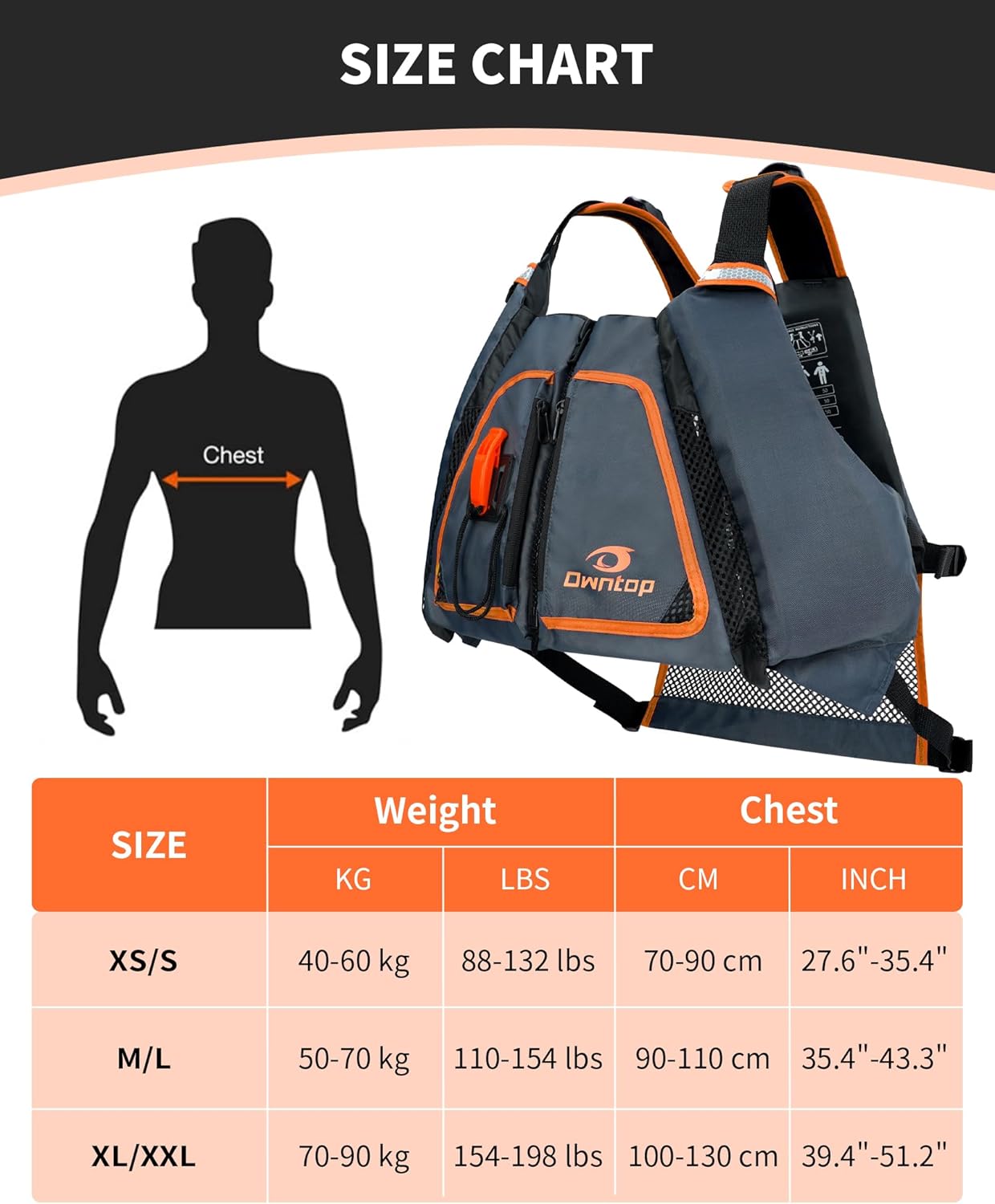 Owntop Adult Swim Vest | Excellent Buoyancy | High Mesh Back | Float Jacket for Kayaking, Boating, Fishing, Paddle Sports