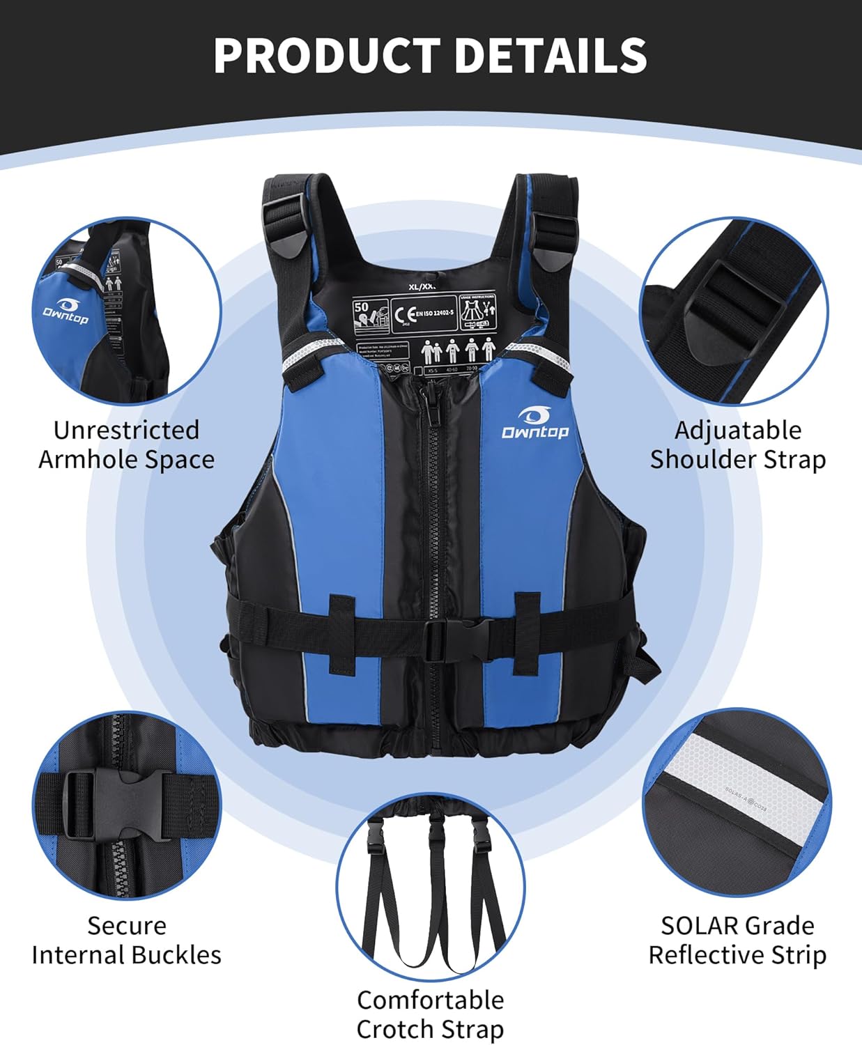 Owntop Swim Jacket Adult | Adjustable Crotch Strap | Large Armhole | Sturdy Zipper & Buckle | Kayak, Boating, Fishing, Paddle Sports