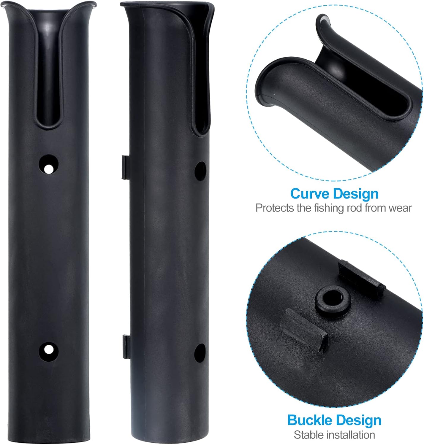 The fishing pole rack is made of strong nylon material, which is lightweight, durable, good weather resistant, and long service life. The fishing reel fixed position arc design, and the edges are smooth, and specially designed to protect fishing rods from being scratched.