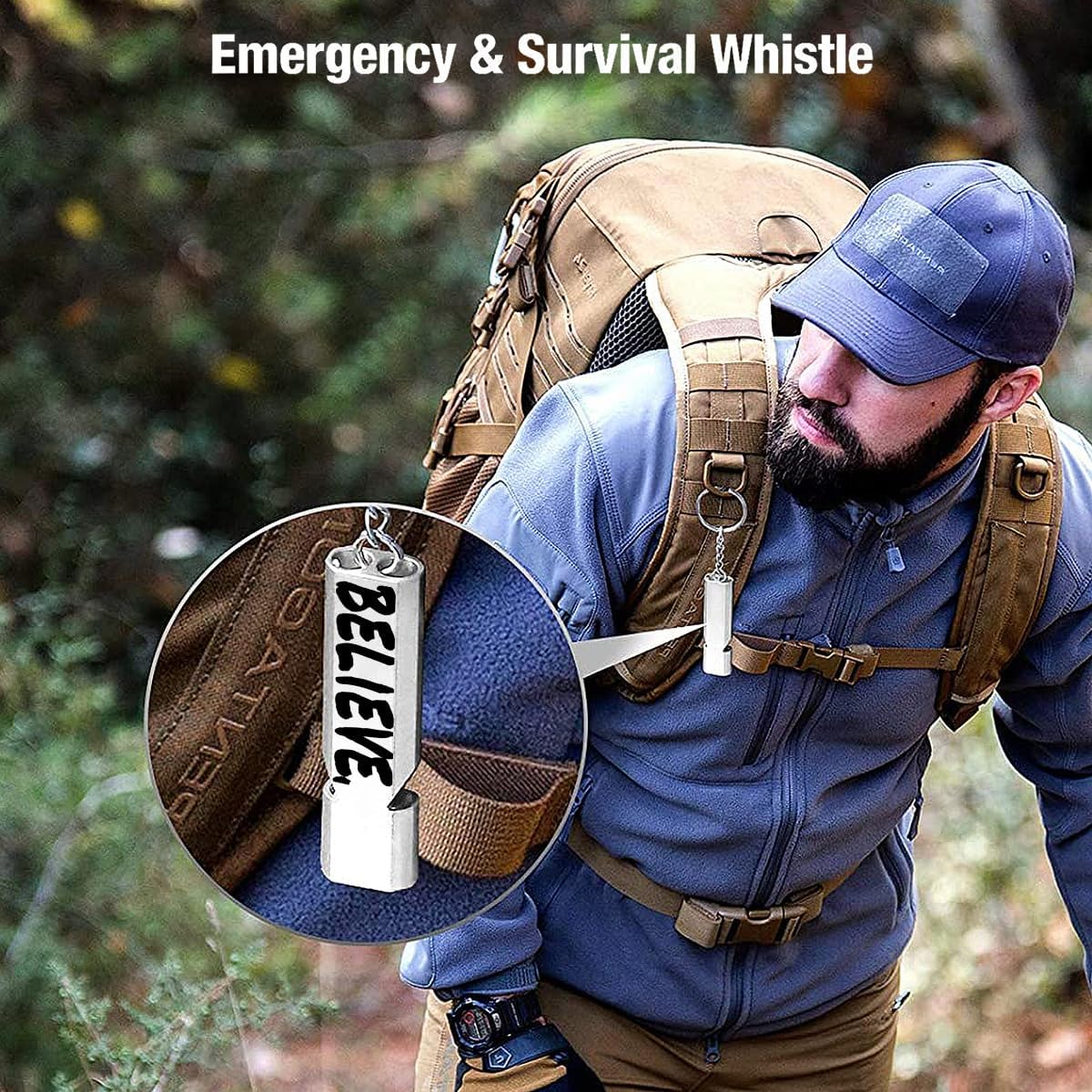 Premium Lifeguard Safety Emergency Loud Survival Whistles with Keychain High Pitch Double Tubes for Outdoor Camping Hiking Boating Hunting Fishing Kayak Kids Rescue Signaling(Believe