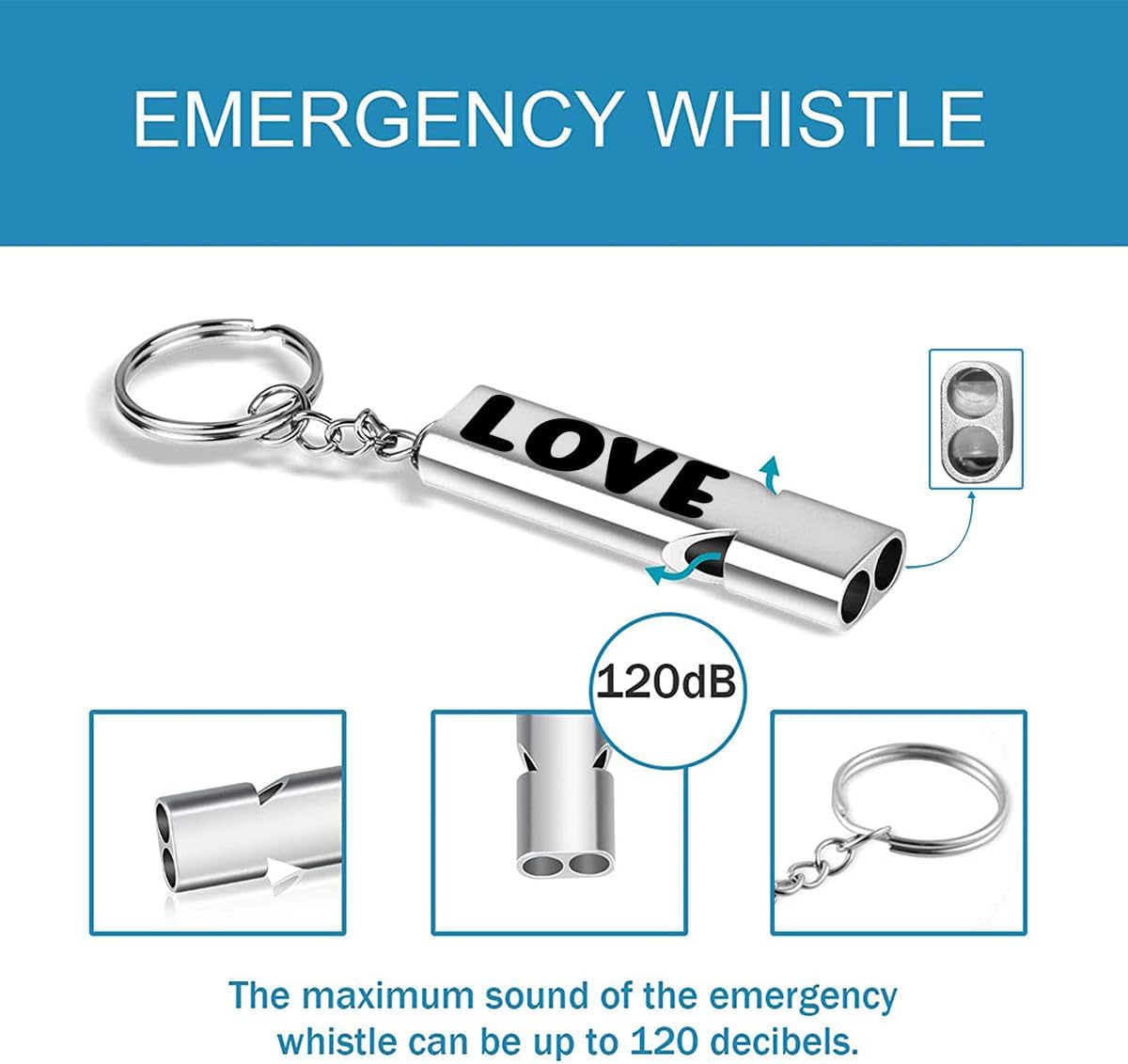 Premium Lifeguard Safety Emergency Loud Survival Whistles with Keychain High Pitch Double Tubes for Outdoor Camping Hiking Boating Hunting Fishing Kayak Kids Rescue Signaling(Love1