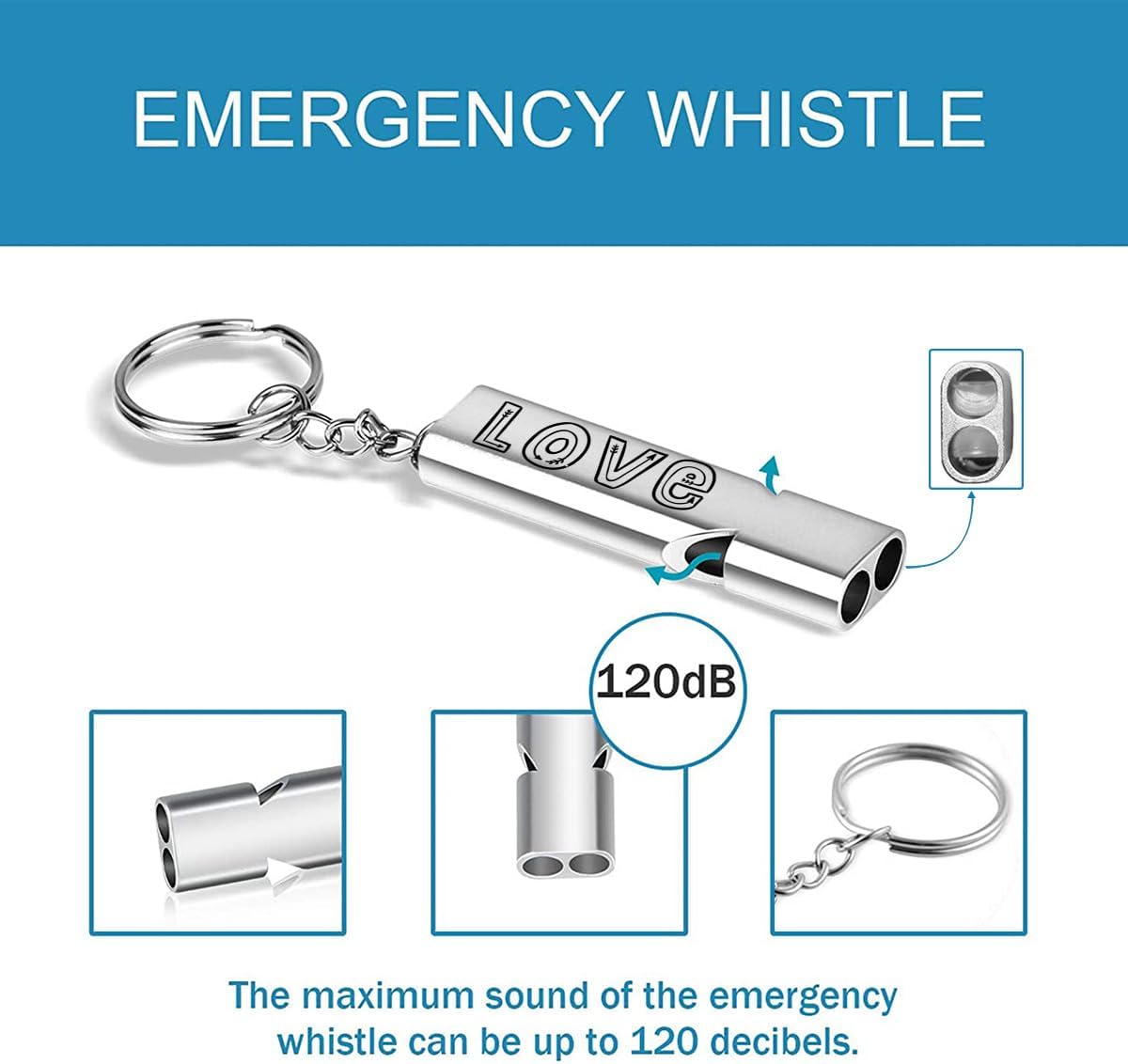 Premium Lifeguard Safety Emergency Loud Survival Whistles with Keychain High Pitch Double Tubes for Outdoor Camping Hiking Boating Hunting Fishing Kayak Kids Rescue Signaling(Love3