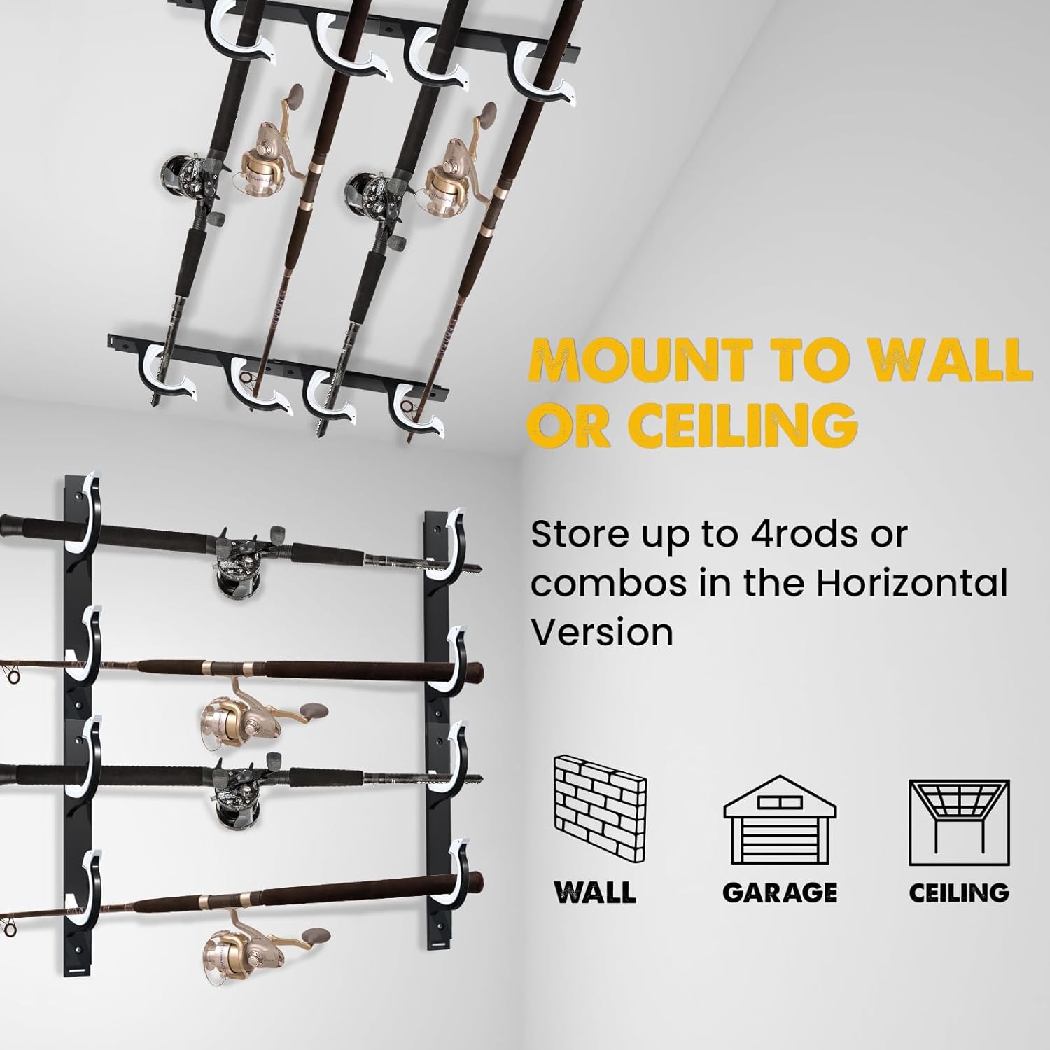 USAGE SCENARIOS – SIMPLIFIED AND WORRY-FREE: This is a high-quality fishing gear storage solution for fishing enthusiasts. We aim to meet customers’ daily needs through innovative product design. Perfect for any location in your home, garage, roof, or door, turning your messy fishing gear into organized storage in an instant!