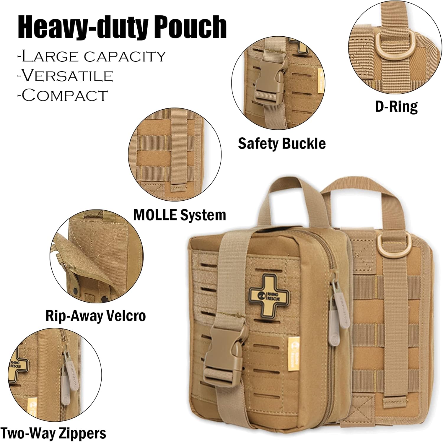 RHINO RESCUE IFAK Trauma First Aid Kit, FSA HSA Eligible, Medical Pouch for Car Home Travel Hiking (Coyote)
