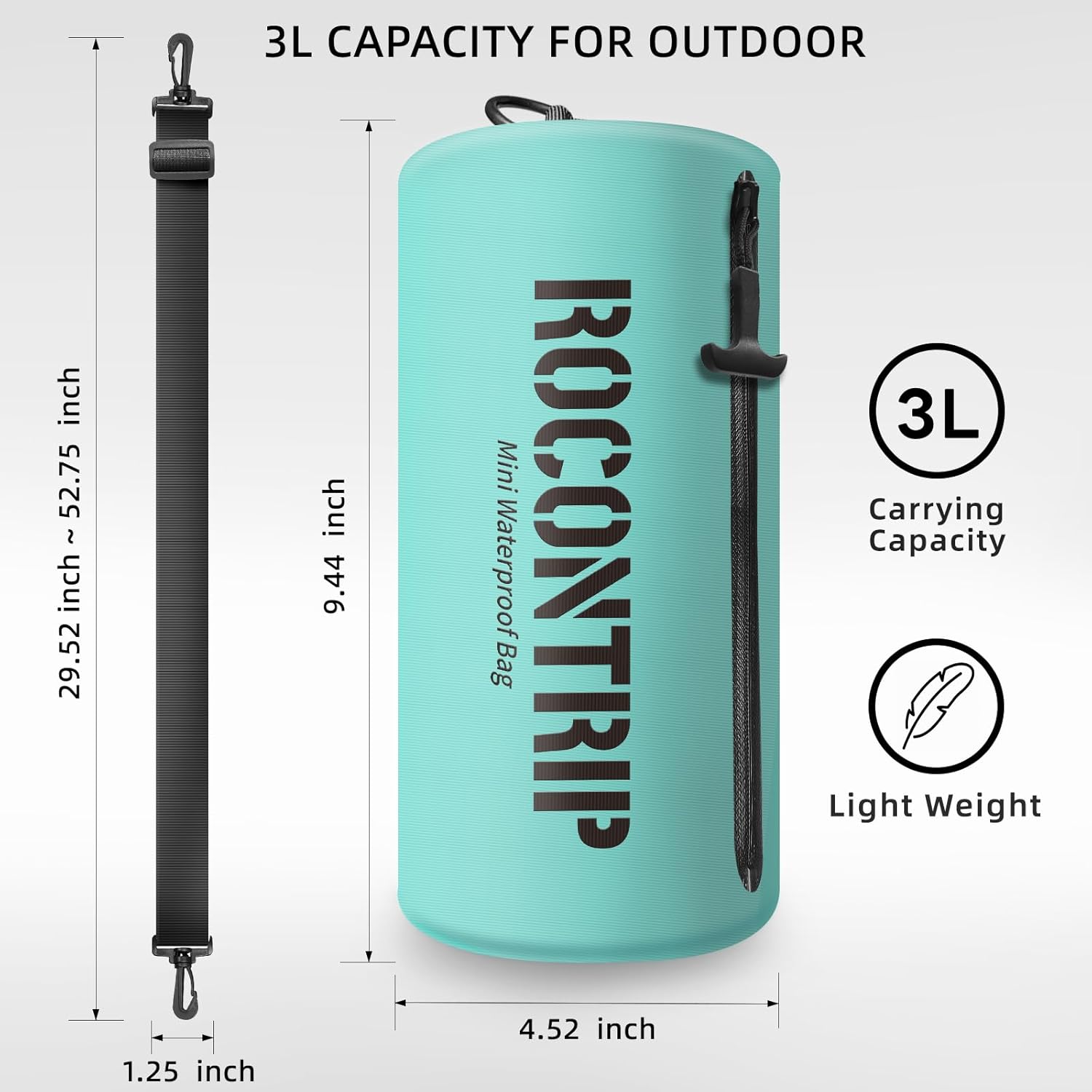 ROCONTRIP Crossbody Waterproof Bag IPX8 Dry Bag With Airtight Zipper Dry Sacks lightweight Portable Swimming Bag For Swimming Kayaking Camping Boating Rafting Fishing Travelling Snorkeling