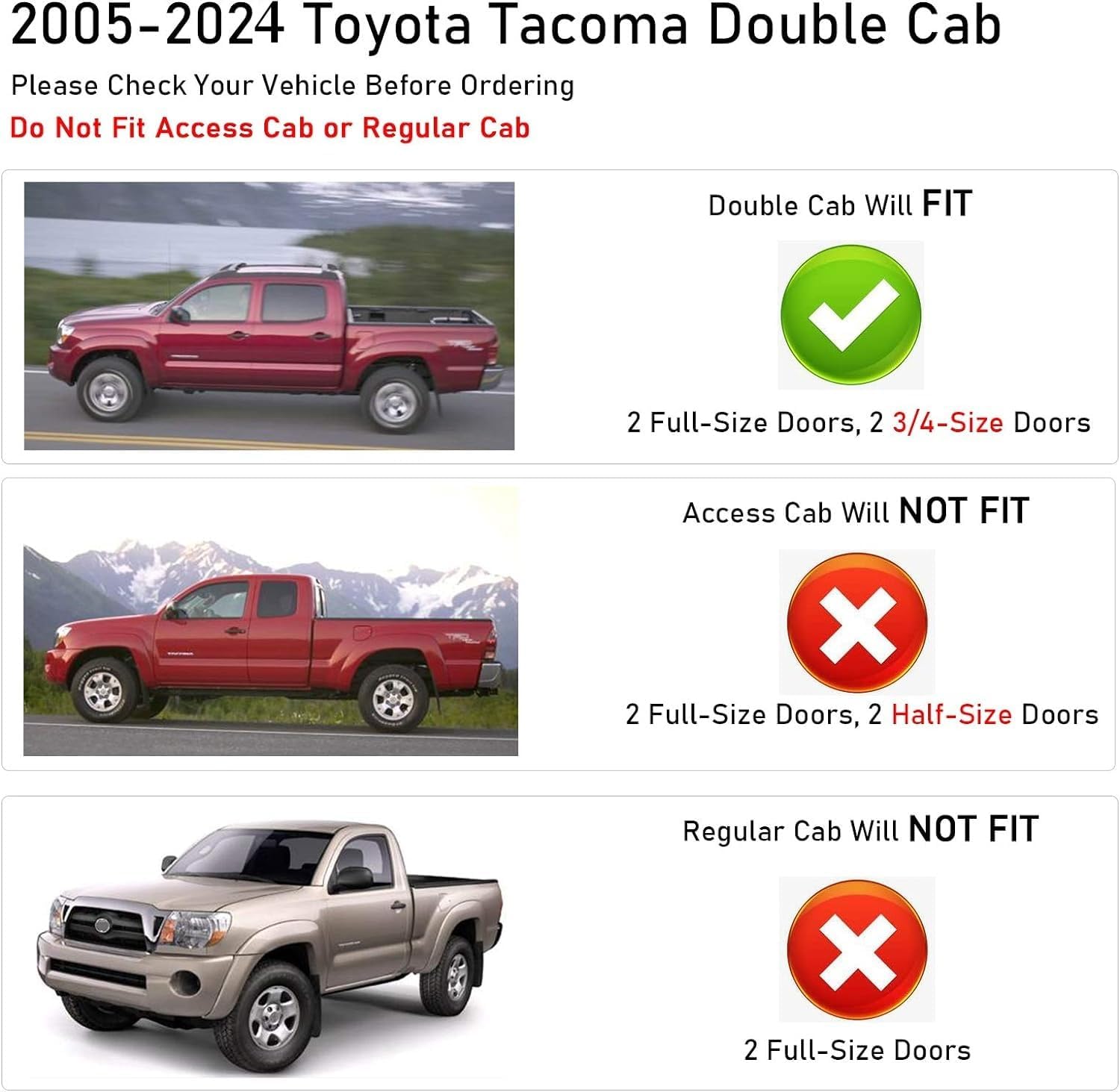 【Tacoma Roof Racks Car】Fitment: Compatible with 2005 2006 2007 2008 2009 2010 2012 2013 2014 2015 2016 2017 2018 2019 2020 2021 2022 2023 2024 Toyota Tacoma Double Cab (2 Full-Size Doors, 2 3/4-Size Doors) ONLY. Will Not Fit Access Cab!!! CHECK DETAILS IN DESCRIPTION!!!